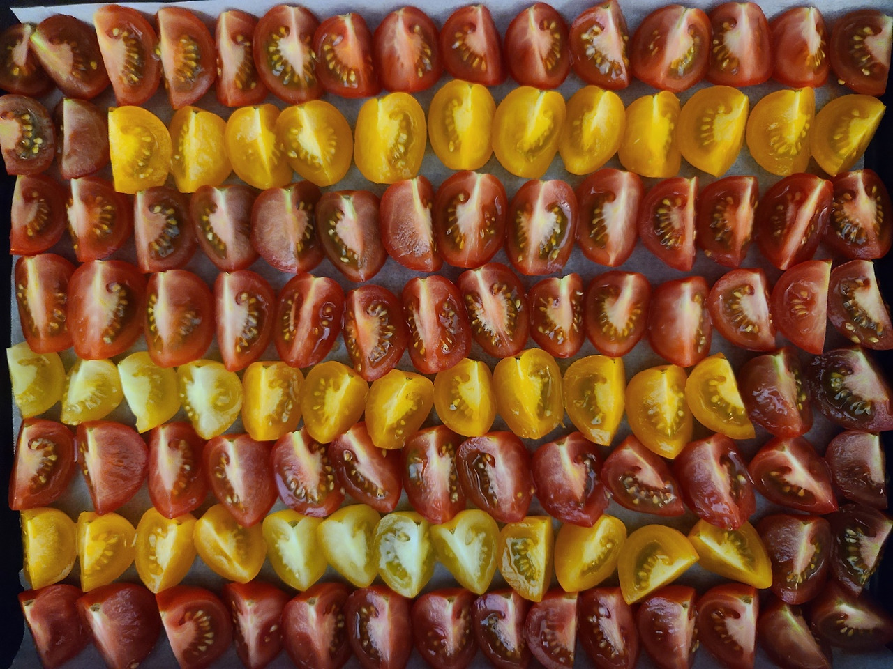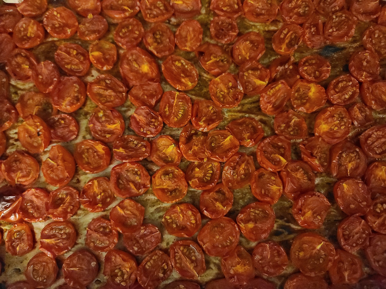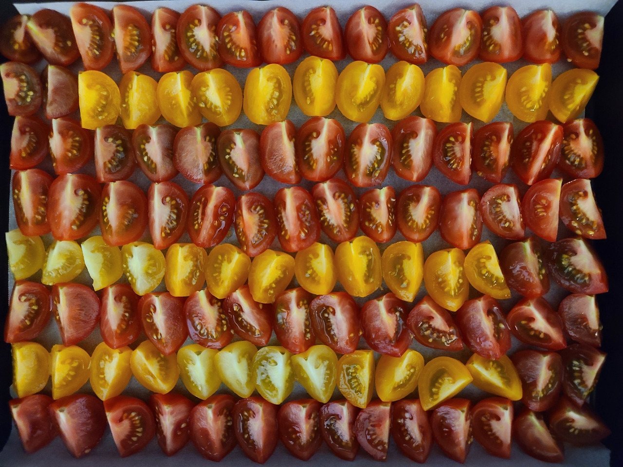 유럽에서 썬드라이드 토마토를 찾는 건 쉬운 일이지만, 우리나라에서는 아직 쉽지 않다. 비록 썬-드라이는 못 시키지만 건조기나 오븐, 에어프라이 등을 이용하여 말릴 수 있다. 다양한 컬러의 방울토마토가 나오니 보는 맛도 먹는 맛만큼 좋다. 본인이 좋아하는 허브를 넣고, 좋은 품질의 올리브오일을 더하여 숙성시키면 멋진 식재료로 재탄생된다.
