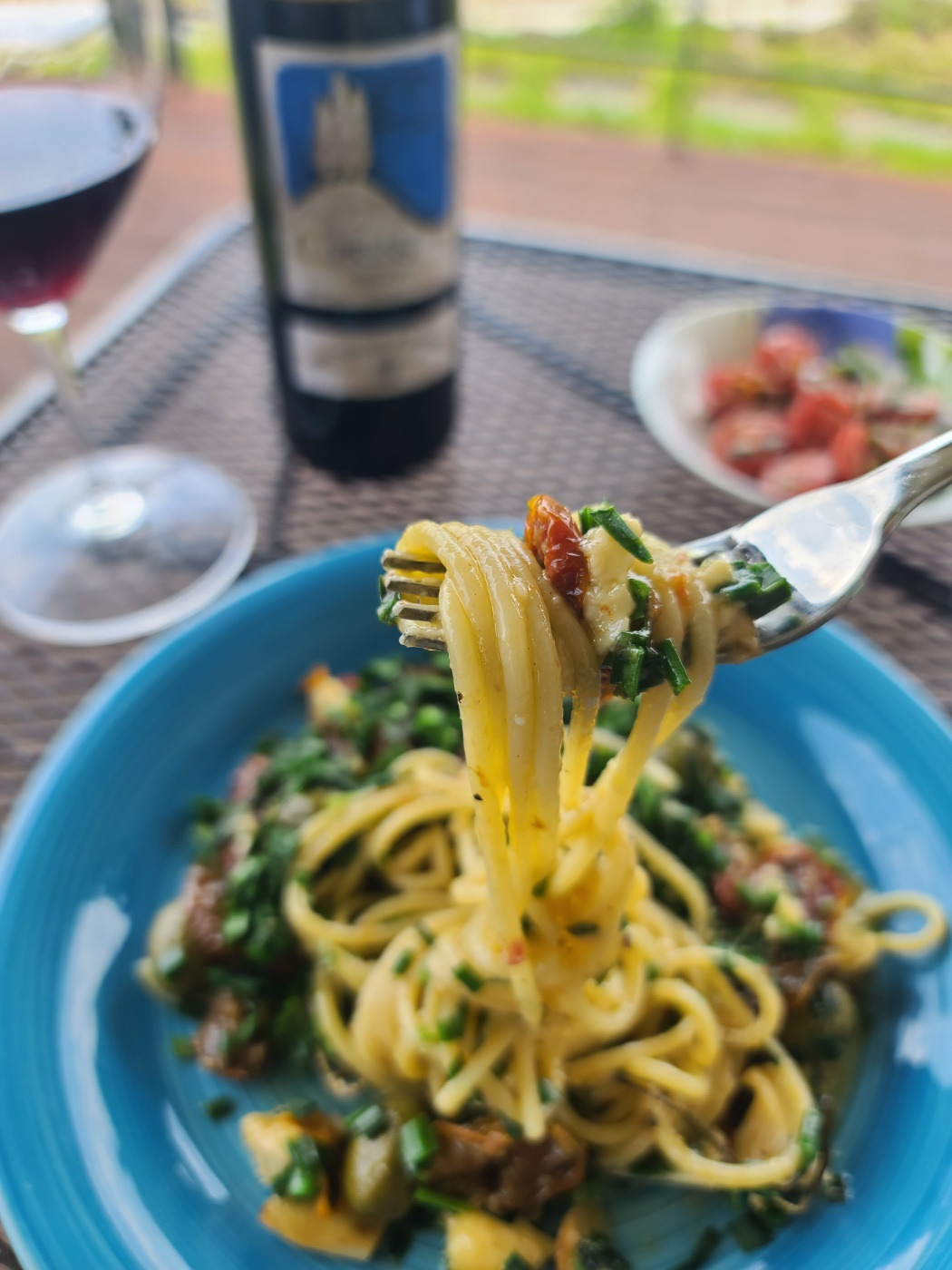 + 취향에 따라 슬라이스한 마늘, 페퍼론치노, 통후추, 올리브, 케이퍼, 페타치즈 등을 넣어도 좋다.