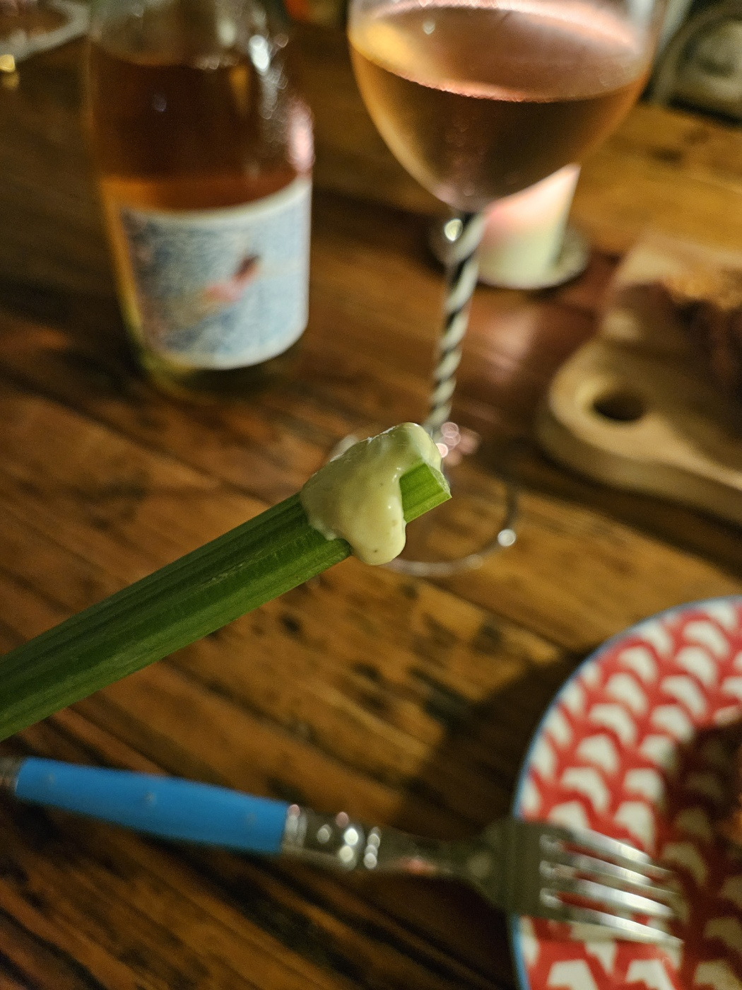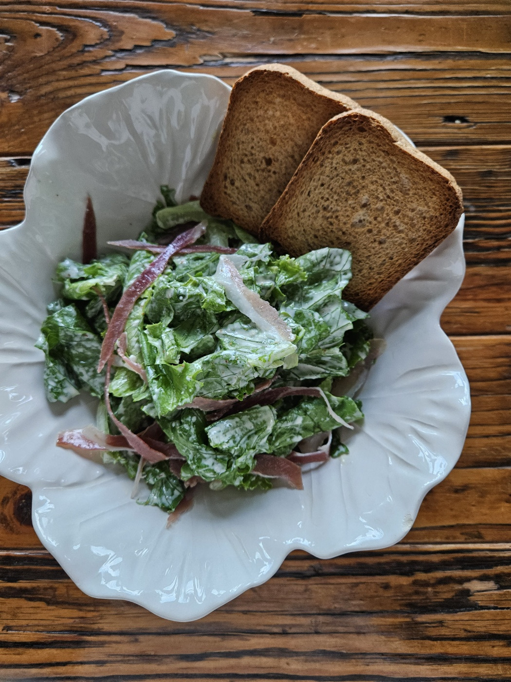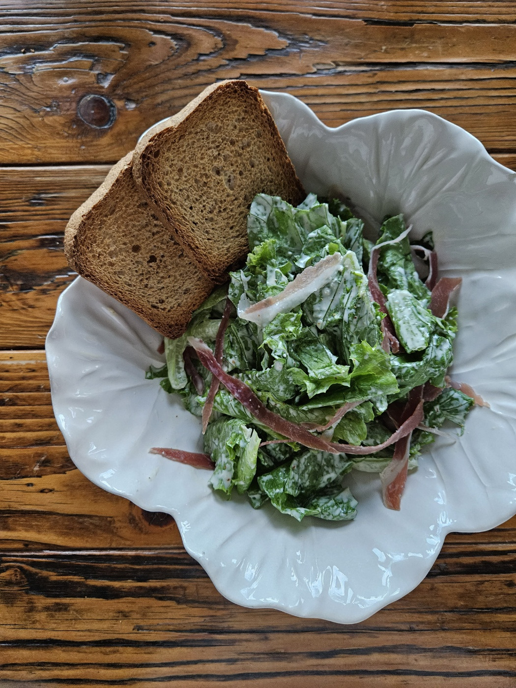 기묘한 와인 페어링: 달걀 노른자의 고소함에 엑스트라버진 올리브오일의 크리스피한 부드러움이 더해져 마요네즈가 되고 거기에 다른 방식의 꼬릿함을 내는 앤쵸비와 파르마지노 레지아노가 얹어지고 디죵 머스터드의 산뜻한 매콤함, 레몬즙의 상큼함이 더해져 완성되는 시저 드레싱이 올라간 시저 샐러드는 시원하게 칠링된 프로세코와 곁들이면 아주 환상적이다. 이탈리아 북부의 글레라 품종으로 만들어지는 드라이한 스파클링 와인인 프로세코는 샴페인에 비해 버블의 입자가 크고 거칠지만 더운 여름날에 만나는 그 버블감은 오히려 반가울 수 있다. 맛과 향이 진한 앤쵸비, 파르마지노 레지아노, 마늘 등이 들어가는 시저 드레싱이기에 오히려 아주 섬세한 샴페인보다 더 좋은 페어링이 될 수 있다. 또 잘 익은 산딸기와 석류의 향을 머금은 멜롯 100%나 멜롯 블렌딩의 로제 와인도 좋고, 가벼운 산지오베제 품종의 레드 와인도 좋은데 높은 등급인 끼안띠 끌라시꼬 그랑 셀레지오네의 오크향이 오히려 방해가 될 수 있기에 산뜻한 끼안띠나 끼안띠 끌라시꼬를 추천한다.