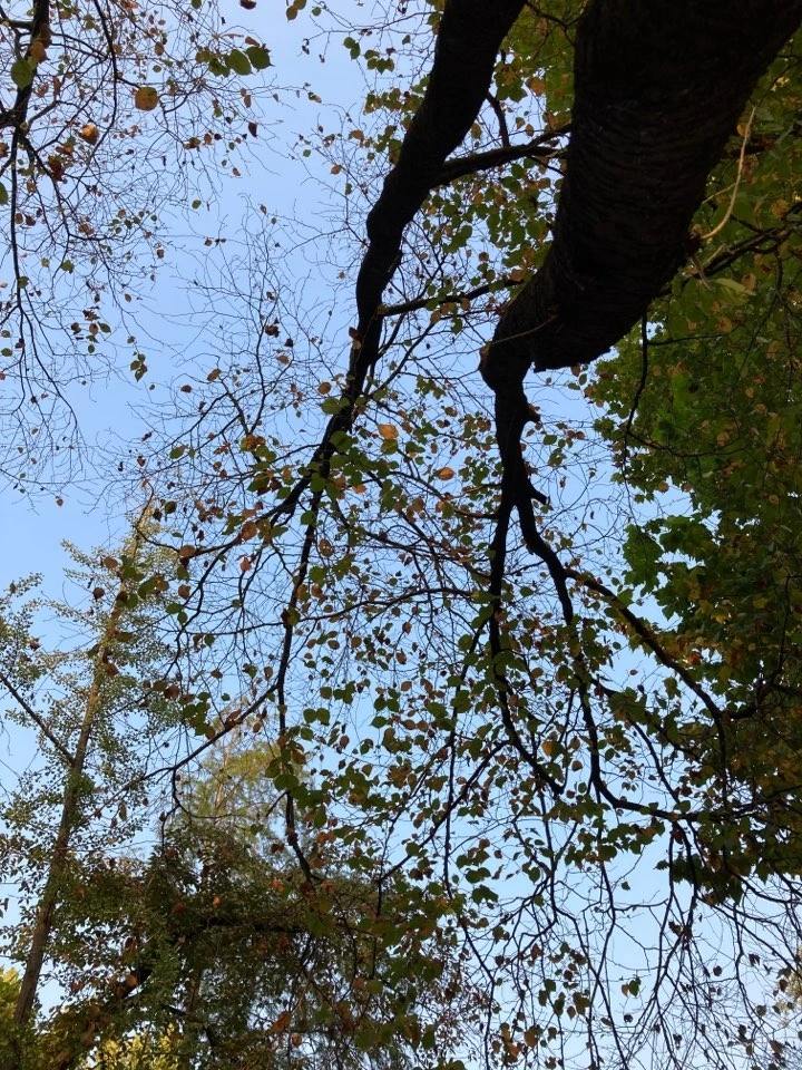 고개를 들어 위를 올려다보니 나뭇가지 뒤로 시리도록 파란 가을 하늘.