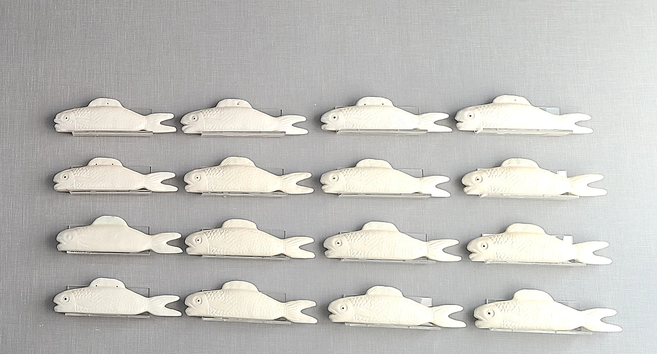 드디어 선생님의 끝나지 않을 것 같던 작업은 마무리되고, 물고기들이 태어났습니다. 전시장을 가득 메운 물고기들, 그녀는 저린 손을 주물러 가며 자리를 찾아주었습니다.