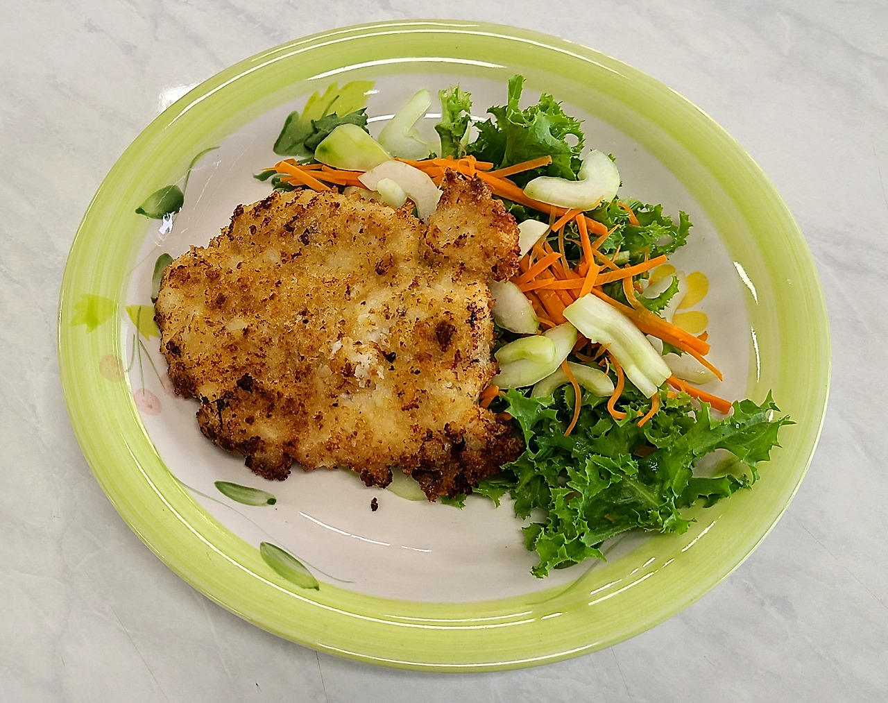 “얘들아, 이렇게 살짝 프라이팬에 구운 커틀릿을 오븐에 넣으면 기름이 살짝 빠져 더 바삭해.”