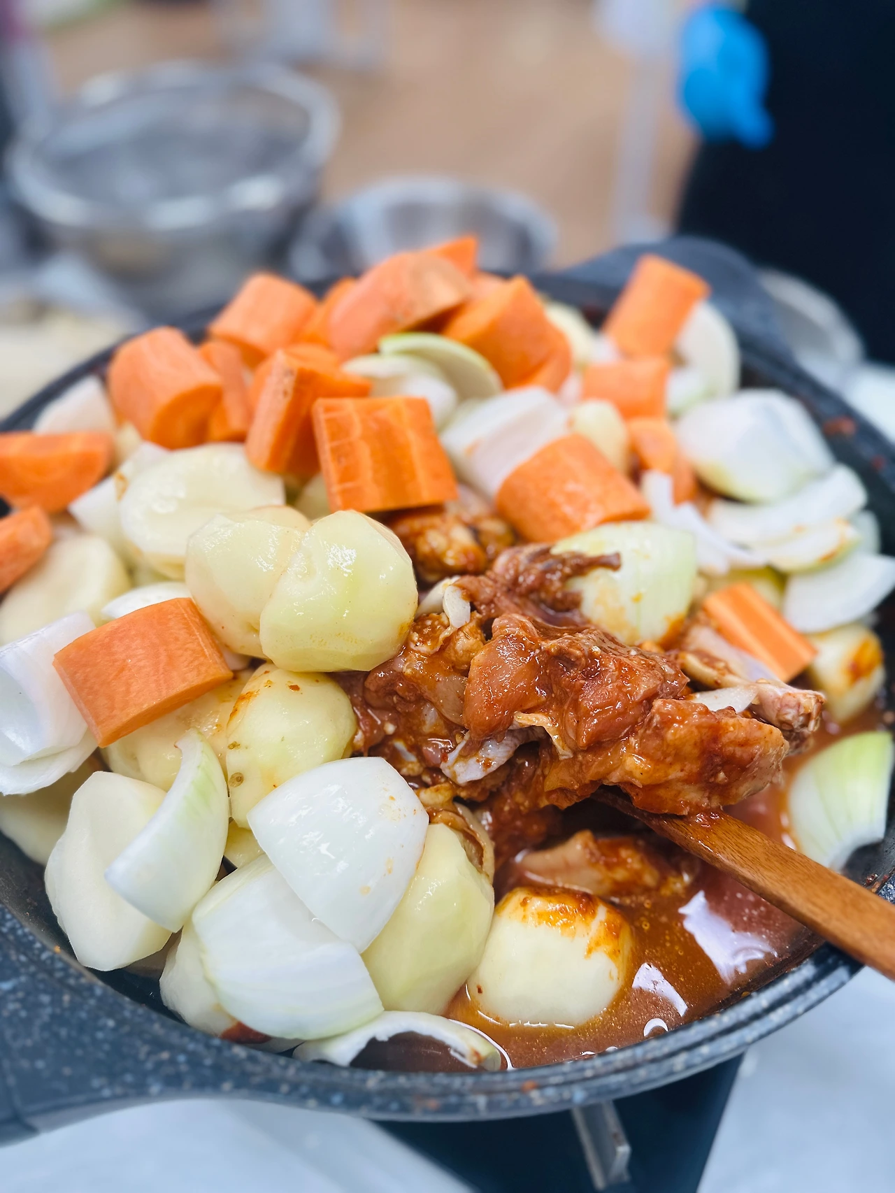 “일단 허브는 1학년이 다지고, 재범이 마늘 다져주세요. 닭은 누가 씻을까? 그래 우스. 나머지 분들은 닭볶음탕에 들어갈 채소를 썰어줍니다,”