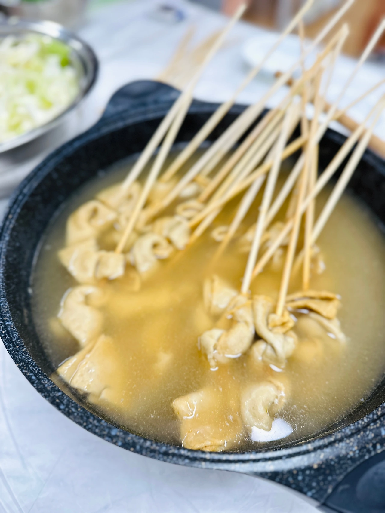 육수의 반을 냄비에 옮겨 소금과 후추로 간을 해주고 어묵을 넣었다. 제법 분식집 티가 나기 시작한다.