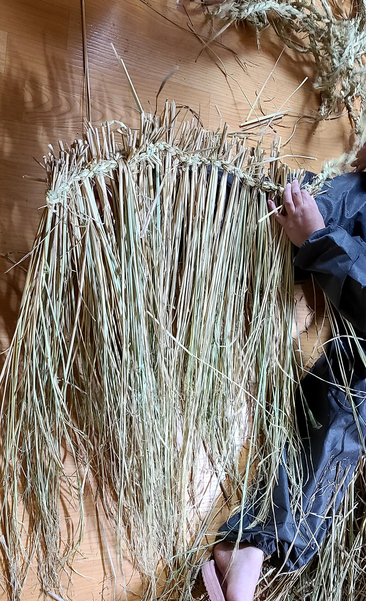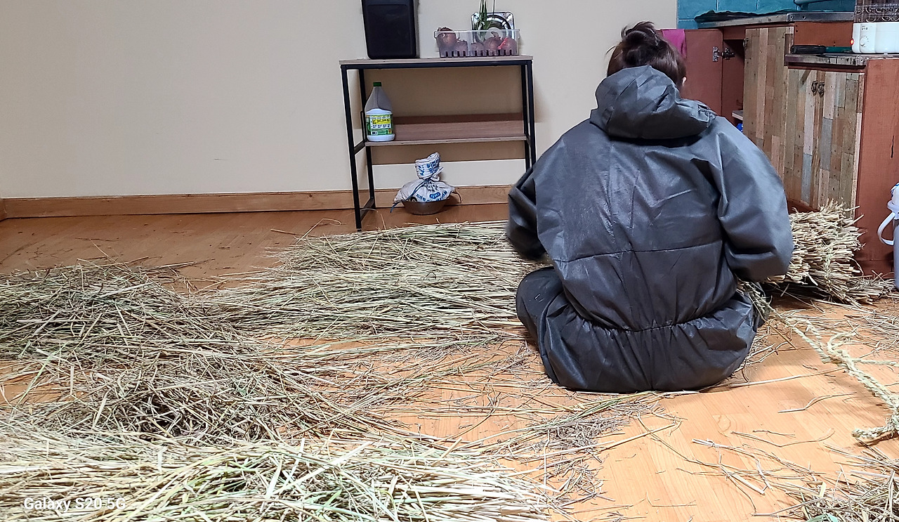 집 앞 논에서 베어 낸 볏짚을 얻어, 새끼를 꼬았다. 처음엔 더디고 더뎠고 한자씩 늘어가는 길이에 뿌듯했다. 그러나 이제는 볏짚 사이에서 알맞은 줄기를 골라 두께를 조절하며 안 보고도 꼴 수 있다.