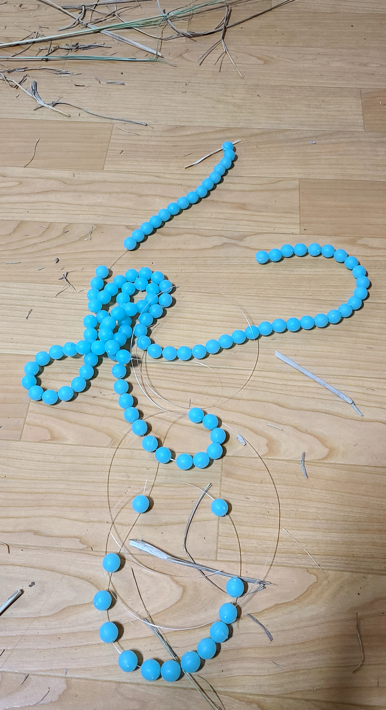 뿌듯한 마음으로 남은 짚을 두부가 청소하고 난 계속 구슬을 끼웠다.