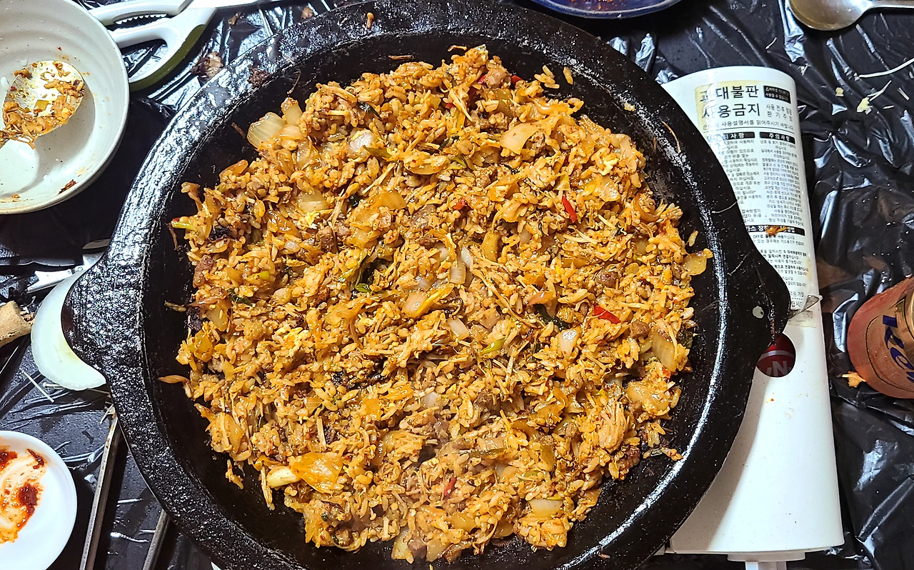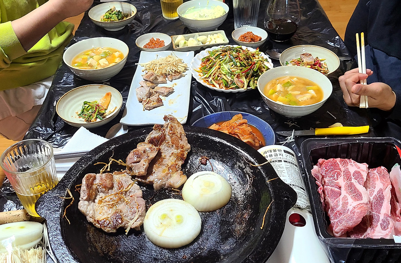 아침에 콩나물국에 겨우 남아있던 불고기와 죽순을 구워내어 주었는데.