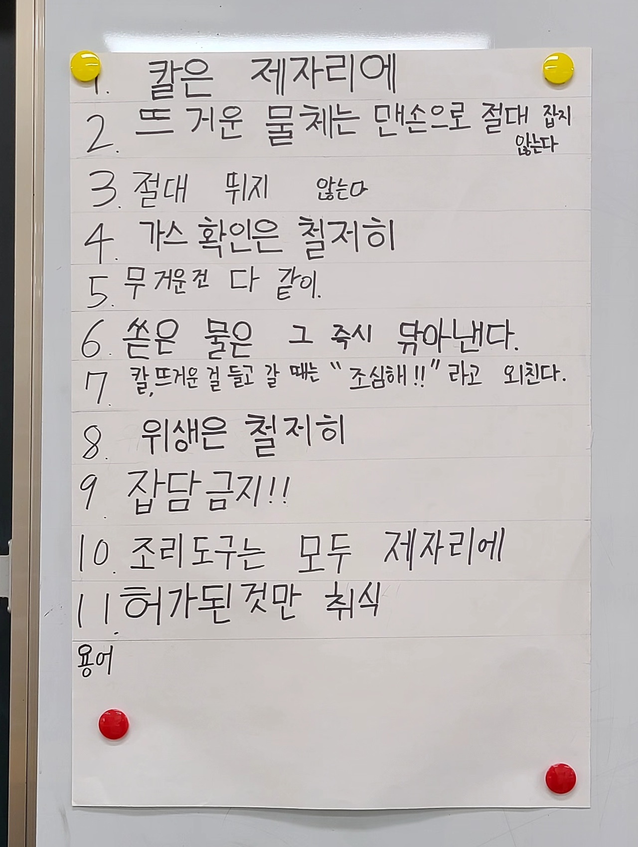 그리고 우리가 만들어 놓은 약속과 안전 규칙은 철저히 지키도록 했다.