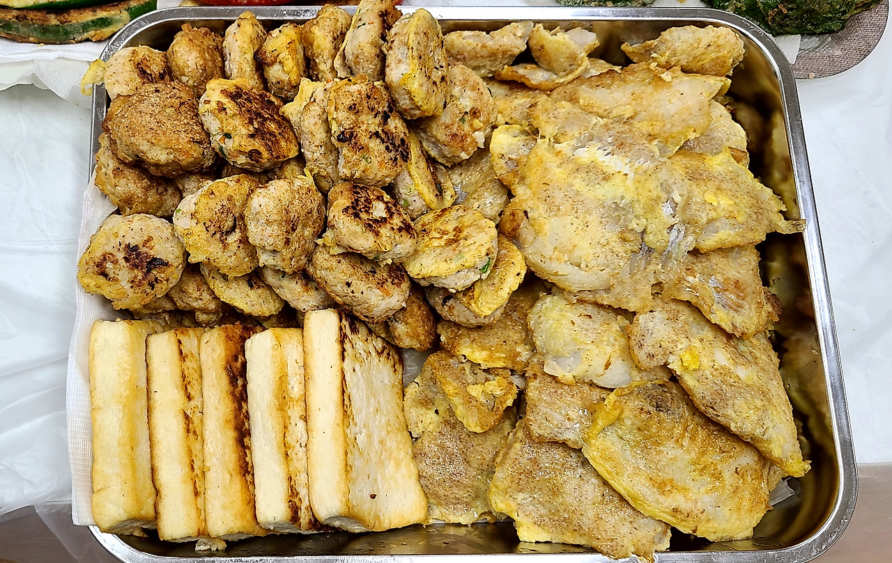 동그랑땡 반죽은 간 돼지고기에 수분을 꼭 짜낸 두부를 넣고, 마늘, 생강, 쪽파, 소금을 넣고 반죽을 잘 치대야 합니다.
