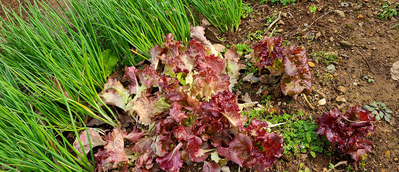 좌, 시금치와 청경채. 우, 상추와 쪽파