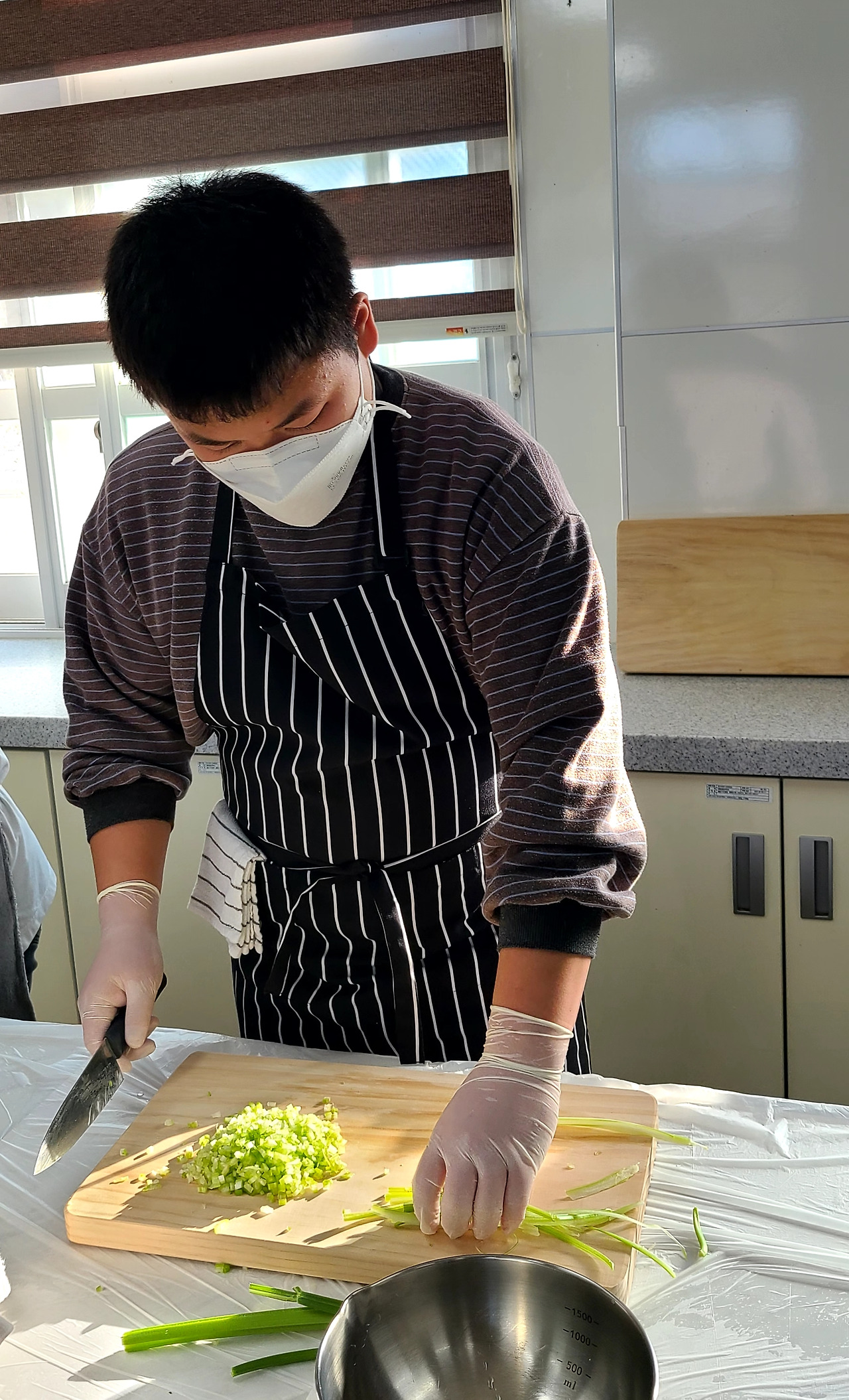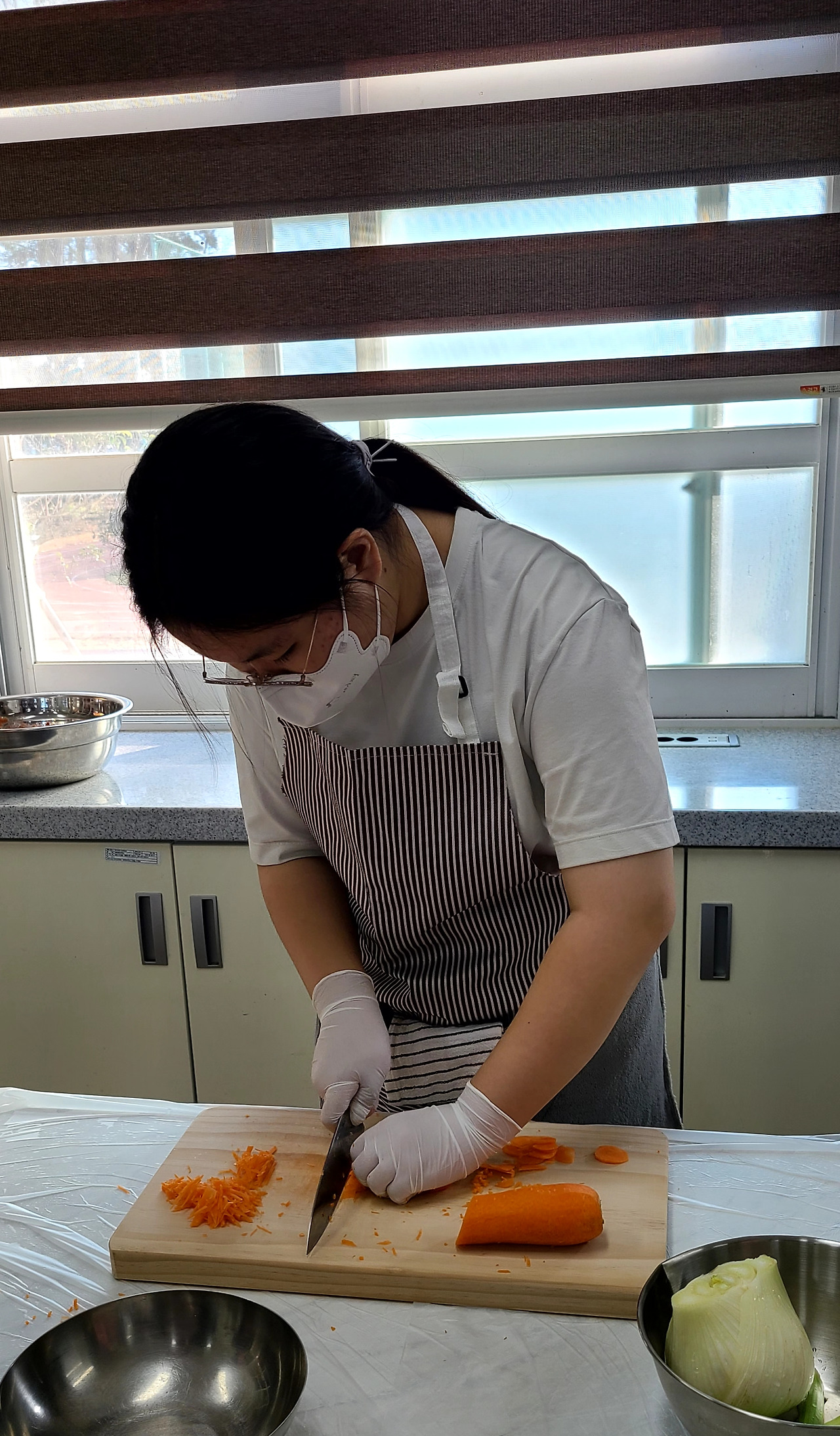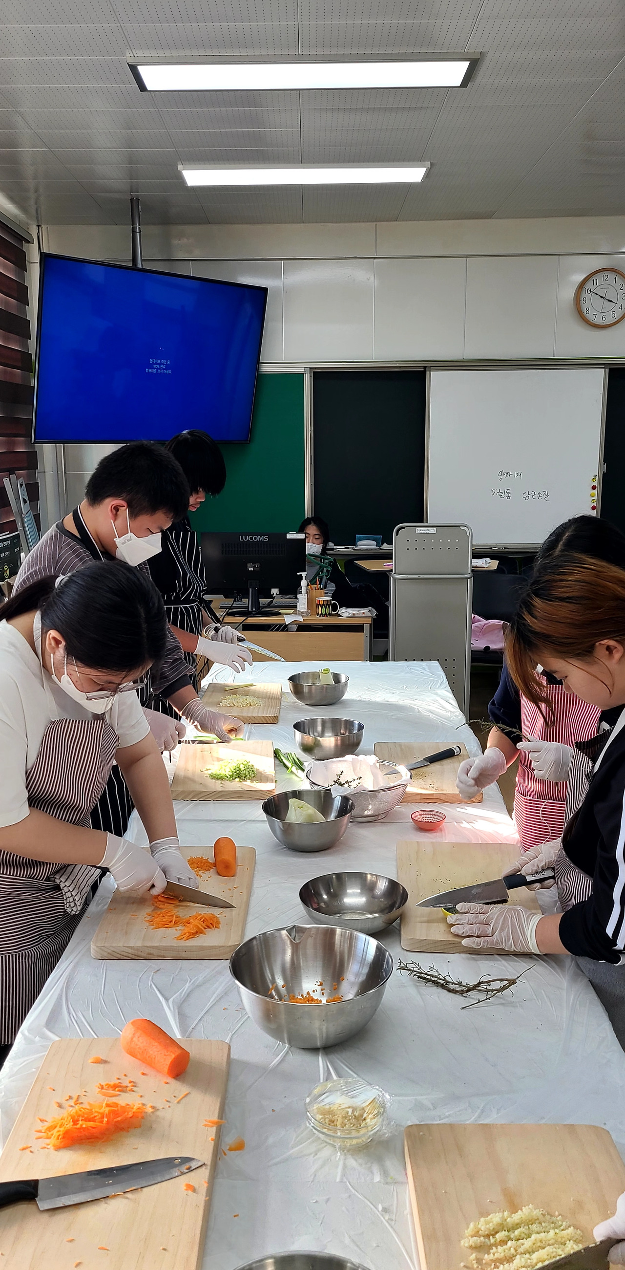 “자 이제 시작합니다. 모든 채소는 손질해 씻고, 3학년 양파와 마늘 다집니다. 1학년 허브 다질 줄 알지?”