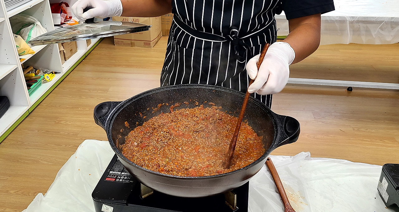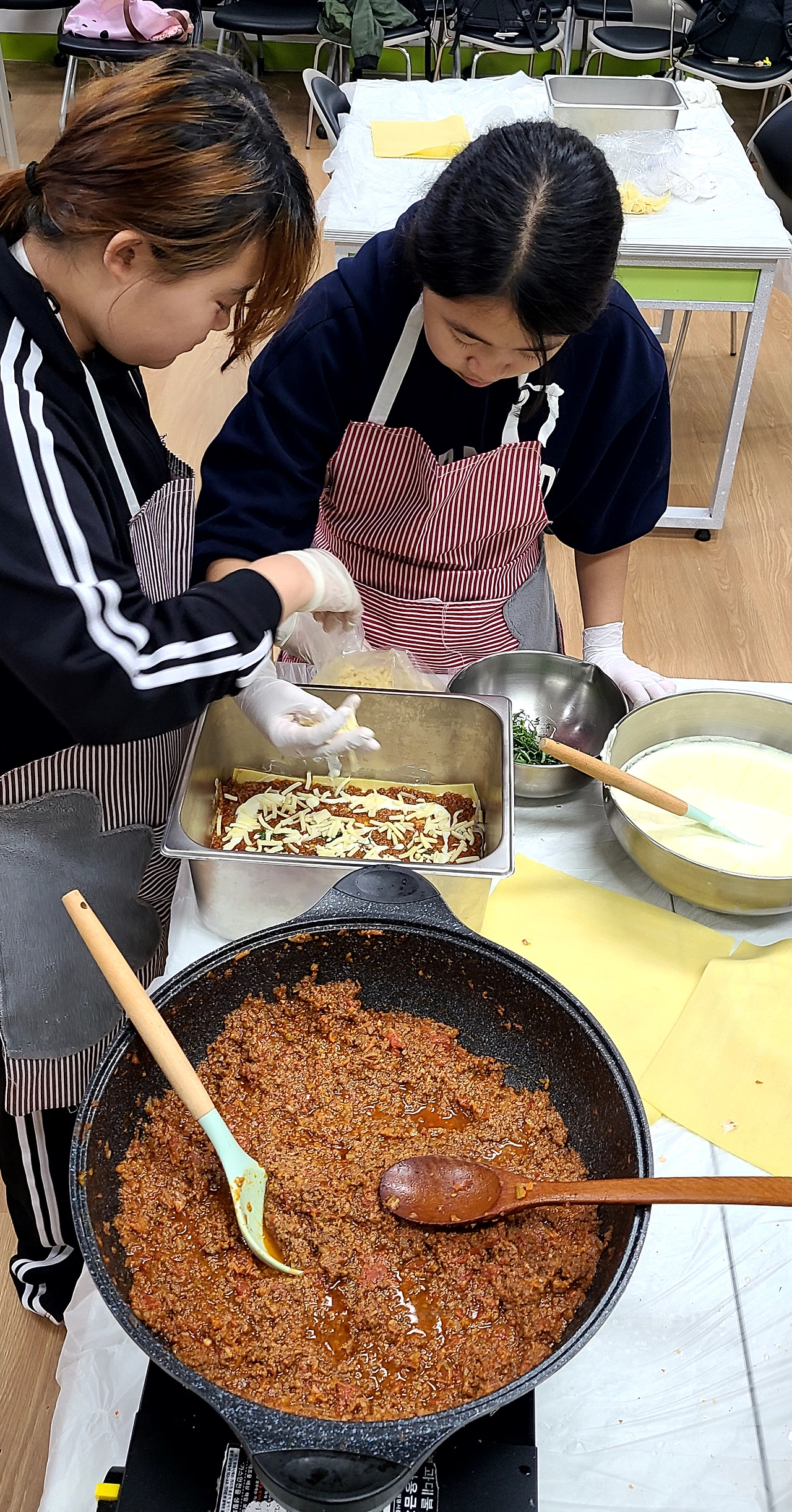 라자냐를 만들고 있는 1학년, 배고프다고 라구파스타 만드는 2학년