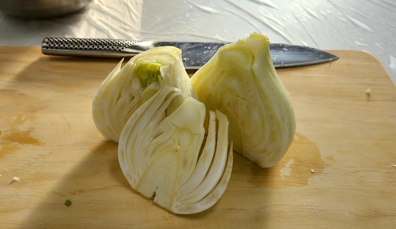 “펜넬이라는 거야. 좀 있다 ‘베샤멜’이라는 소스 만들 때 쓸 거야. 요건 ‘릭’이라는 서양 파.”