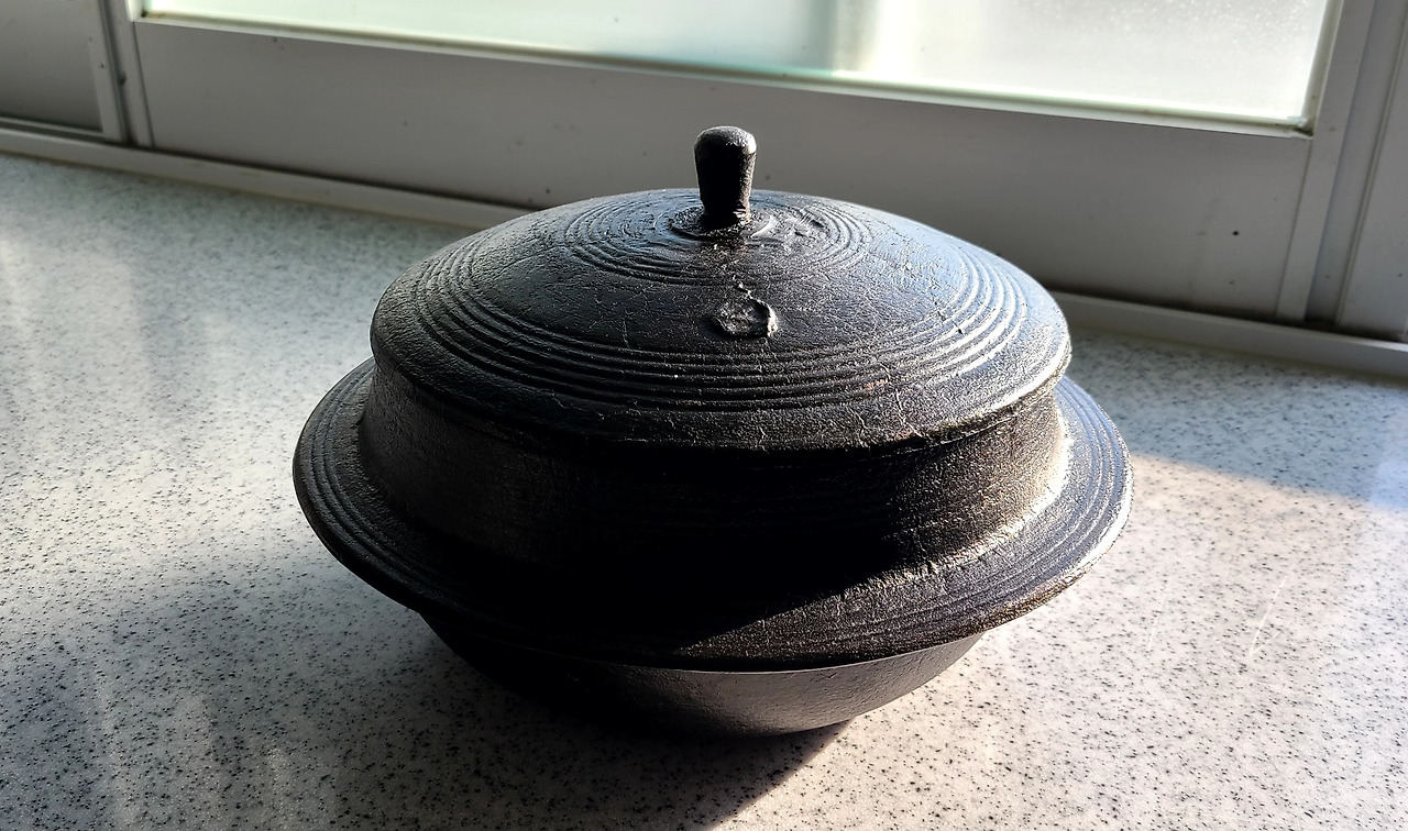 쇠솥은 바닥 면이 두껍고 뚜껑이 묵직하다.