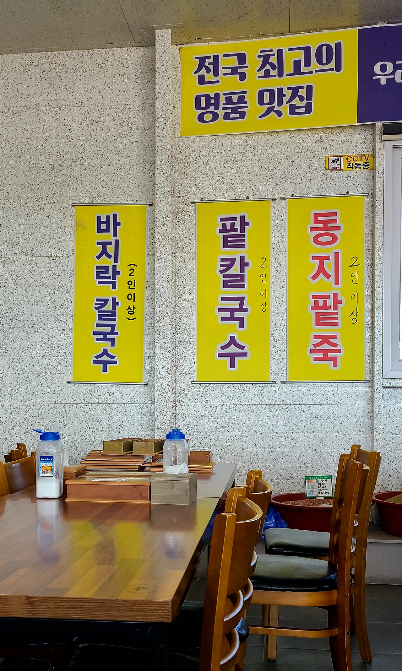 자리를 잡고 앉아 두부에게는 미안하지만, 팥칼국수 두 개를 주문하고 주위를 둘러봤다.