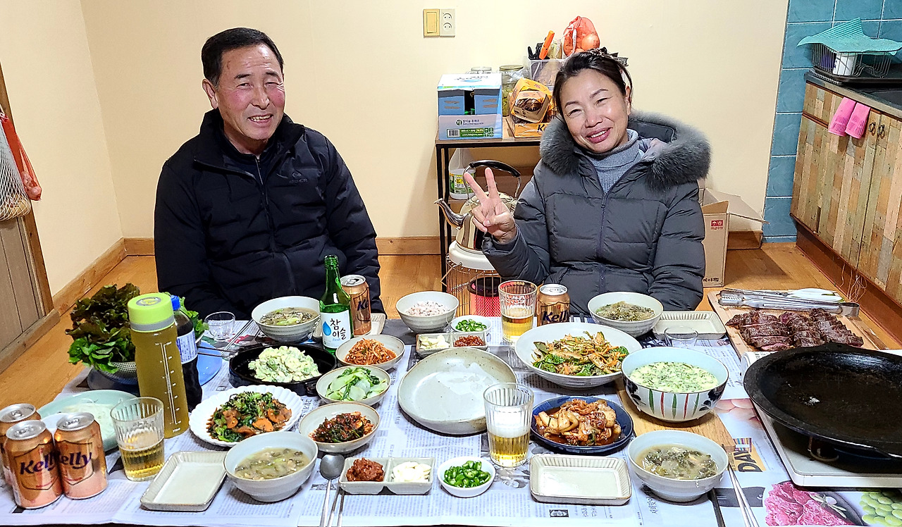 그래서 두부와 나는 마을을 위해 애쓰시는 이장님 부부를 초대해 음식을 대접하기로 했어요.