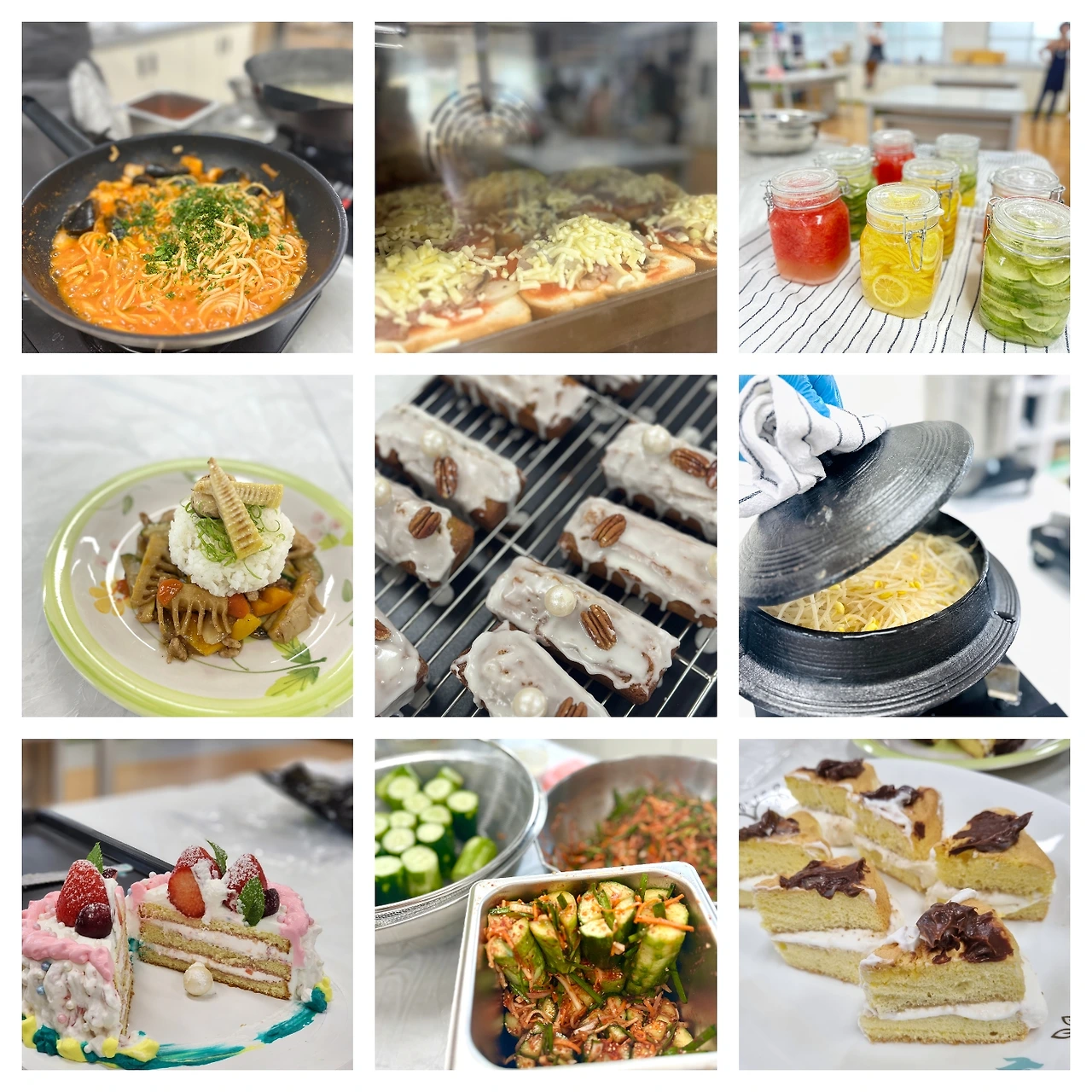 레몬 버터빵, 호두 버터빵, 무생채, 무생채 비빔밥, 깍두기, 동치미, 무밥, 소고기뭇국, 소고기 볶음밥, 토마토소스, 디마레 (토마토파스타), 아마트리치아나(돼지 볼살이 들어간 토마토 파스타), 풍기 토마토 (버섯 토마토 파스타), 오븐 치즈 파스타, 피자빵구이, 죽순 덮밥, 스파니쉬 스펀지케이크, 케이크 테코, 시트러스 과일차, 스파클링 에이드, 달걀 프라이, 수플레 에그 오믈렛, 수란, 레몬 에그빵, 베이컨 에그 베이크, 콩나물밥, 콩나물무침, 콩나물국, 버섯볶음, 배추나물, 머위나물, 죽순 w 들깨 볶음, 들깻잎 볶음, 중식 볶음밥, 오이소박이, 돈가스, 마카로니 치즈구이, 탕수육, 중식 감자볶음, 레몬버터빵, 피칸 버터빵, 김치볶음밥, 짜장면, 김밥, 허브 통닭 오븐구이, 치킨커틀렛, 닭껍질로 감싼 안심 레몬구이, 닭볶음탕, 즉석 떡볶이, 김말이 튀김, 어묵탕, 까르보나라 떡볶이, 피칸 레몬 버터 쿠키, 깻잎 전, 동그랑땡, 동태 전, 배추 전, 두부 전, 고추전, 호박전, 채소믹스 전, 만두, 라쟈냐, 볼로네제 파스타, 유부 반두전골, 수육, 겉절이, 파김치, 무·당근 초절임 무침, 등심 스테이크, T본 스테이크, 토마호크 스테이크, 바비큐소스, 크림소스 그리고 솥 밥