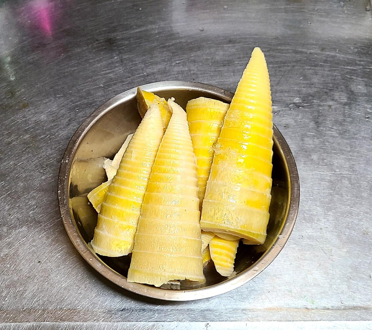 왕대 숲에서 채취하고 손질해 얼려둔 죽순도 꺼내 녹이고 있습니다.