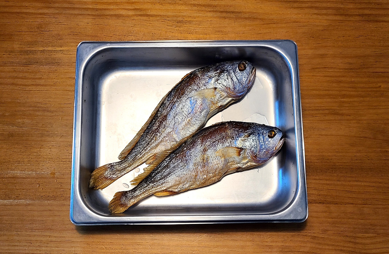 냉동실에 큰 자리를 차지했던 팔뚝만 한 보리굴비를 꺼낸다.