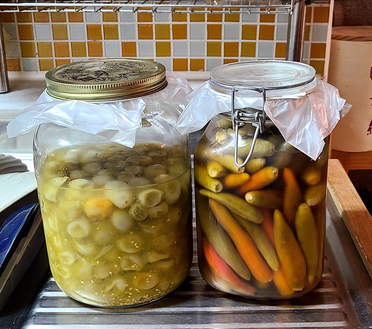 작년에 저장해 둔 파란 토마토와 매운 고추를 꺼내 다졌다.