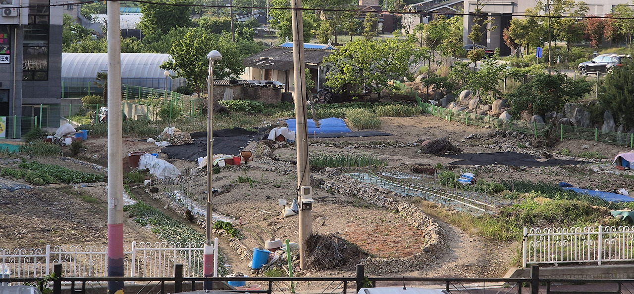 내가 들어도 묵직했던 비닐 두루마리를 아파트 복도에 펼쳐 잘라내고, 할머니가 베란다 난간을 넘어 비닐과 채광용 그물망을 종묘 판 위에 덮고 다시 넘어오셨습니다.