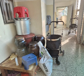 고새 할머니가 보물창고로 쓰는 복도 보일러실에서 무언가 꺼내고 계셨습니다.