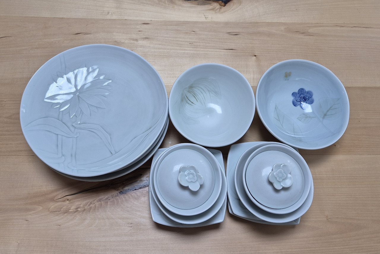 투박한 옹기그릇에 후루룩 국수를 말거나, 냉장고에서 나온 각종 채소나 나물이 들어간 보리 비빔밥도 좋아하지요. 은은한 빛을 띠는 한식과 화려한 음식을 은은한 색으로 품위를 곁들여주는 청자가 품어내는 우아함에 매료되기도 하지요.
