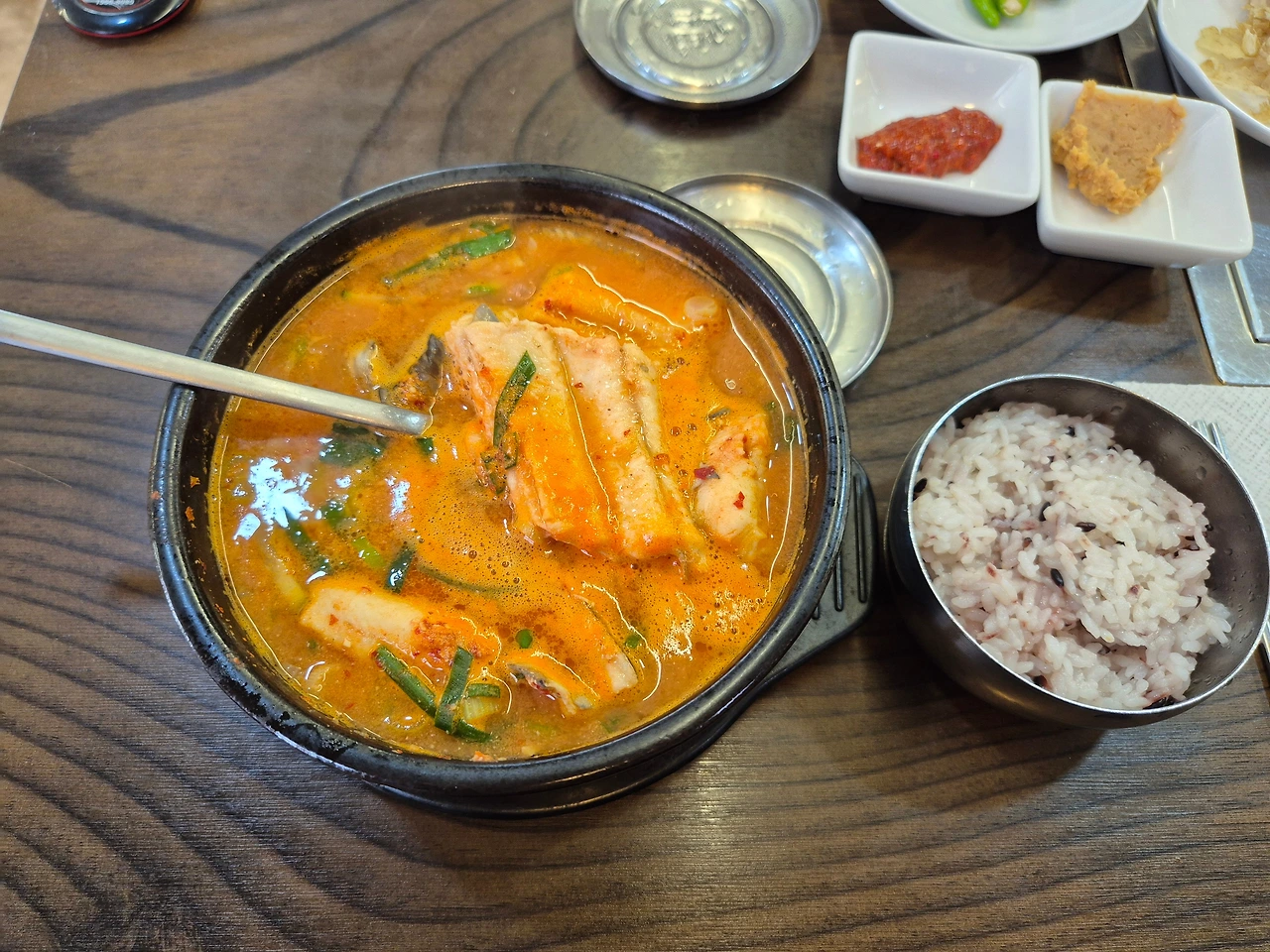 그래서 며칠 짱뚱어탕이나 추어탕도 좋아하는 저는 왕갈비탕을 먹으며 물어봤습니다. 그랬더니 짱뚱어나 미꾸라지가 갈리지 않고 통으로 국에 들어있으면 먹는답니다.