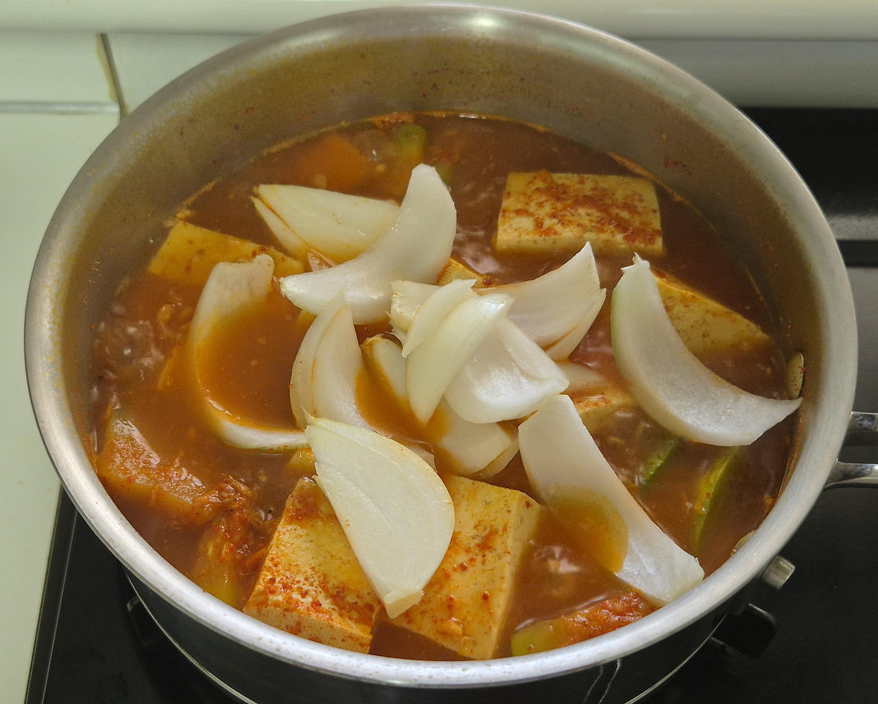 - 양파를 넣고 조금 더 끓여준다.