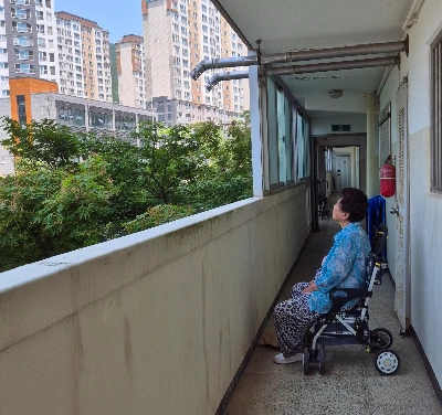 옆집 엄마 할머니는 매일 복도에 나와 밖을 바라보고 앉아계신다.