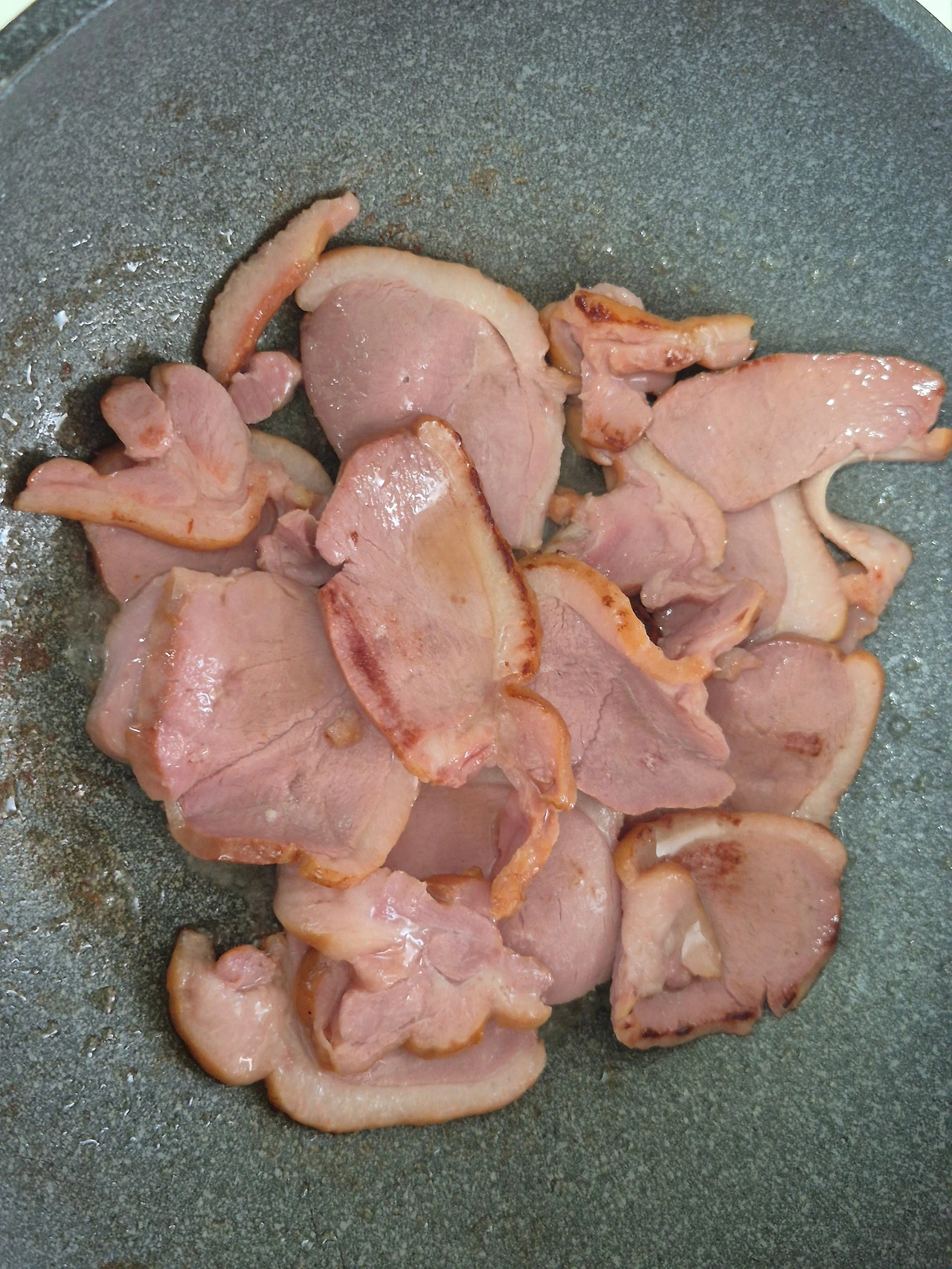 훈제 오리를 구워 줍니다. 그릇에 담아줍니다.