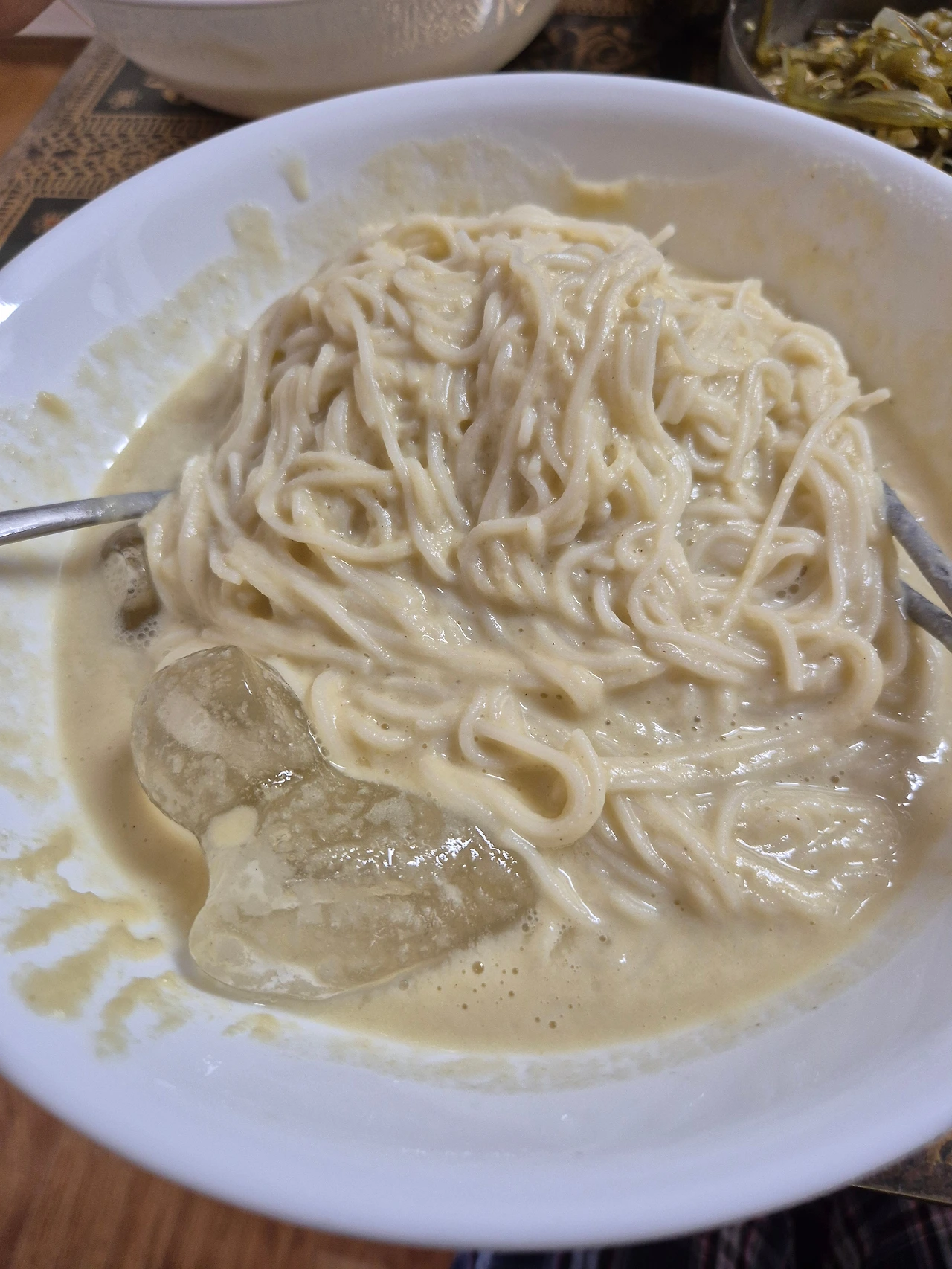이미 그릇에 담겨있던 얼음은 녹아 없어지고, 그나마 차가운 얼음 덕에 국수는 그렇게 퍼지지 않아 다행이었다.