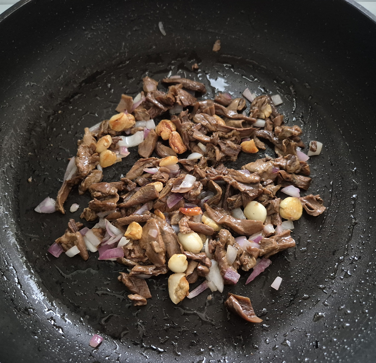 팬에 두른 올리브유가 데워지면 마늘을 넣고 투명해지면 양파를 넣고 양파마저 투명해지면 썰어 놓은 포르치니를 넣고 볶아준다.