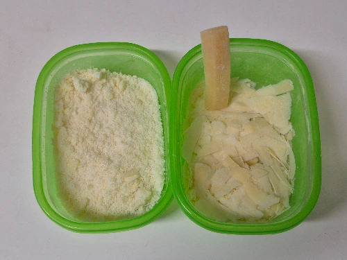 그러다 스르륵 일어나 주방으로 갔다. 반사행동이었을까, 냉동실을 열어 파르비지아노 치즈를 꺼냈다. 나의 사랑스러운 오봉 식탁에 연두색 반찬통 2개와 치즈 그레이터, 감자칼 그리고 파르미지아노 치즈를 올려 방으로 들어왔다.