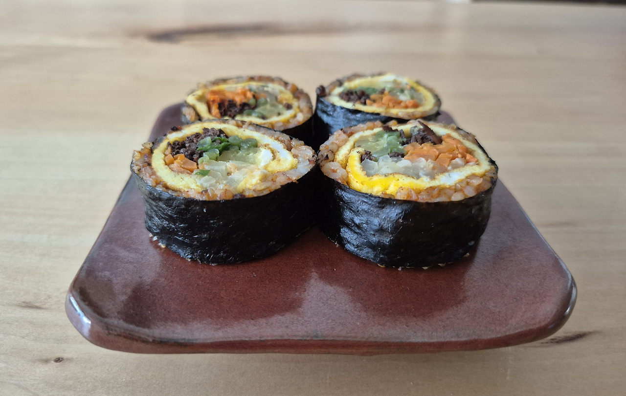 접시에 담긴 김밥을 보고 후회했습니다. 조금만 부지런 떨어 새콤달콤 매콤한 노각나물을 단무지 대신 넣었다면 완벽한 한국식 김밥이었을 것인데.