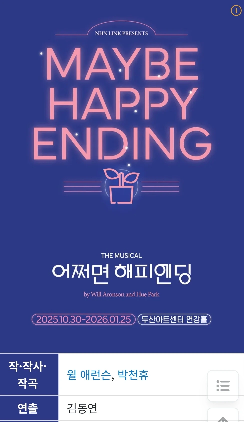 잘 몰랐는데 전참시인지 나혼산에서 박천휴 작가 토니상 수상 기념으로 출연한 거 보고 이 뮤지컬에 대해 알게 되었습니다 제목이 무슨 의미인지는 생각하지 않았어요 그냥 흔한 로코인가 싶었죠