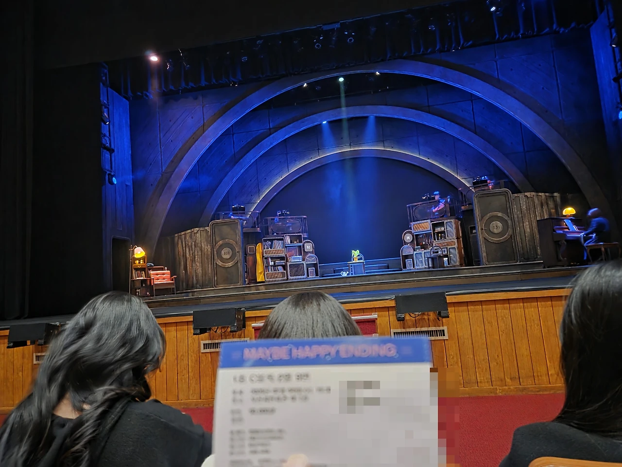 배우는 3명이지만 클래식 연주자 5명이 라이브로 연주하는 고퀄리티 극이었구요!! 내가 본 중 내용이 가장 탄탄하고 음악과 대사 멜로디 조화가 너무 좋구요 스토리 철학이 너무 좋았어요 소박한 줄만 알았던 무대도 환상적으로 변하고 구현에 충실했습니다 LP음악으로 포근하게 감싸는 예쁘고 아름다운 음악들과 가사들. 무대로 내려온 피아노와 이번에 추가되었다고 하는 제임스의 피아노선율도 정말 좋았구요(제임스 피아노 선율때부터 제 오열버튼이 눌러졌습니다 ㅠㅠㅠ)