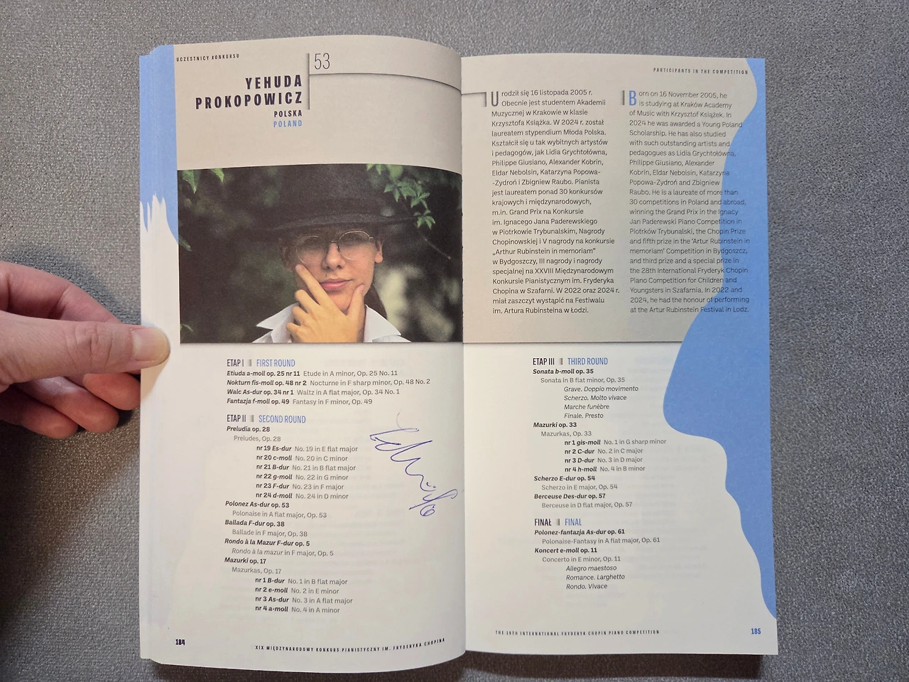 본선 5일차 아침 세션에는 이번 제19회 쇼팽 콩쿠르 본선 기간 동안 꽤 주목을 받았던 참가자들이 무대에 올랐다. 특히 자국에서 열리는 콩쿠르에 참가하는 폴란드 피아니스트들이 돋보였는데, 바르샤바에 가기 전부터 주목했던 Yehuda Prokopowicz(예후다 프로코비츠)와 직관하면서 소리를 듣고 놀랐던 Piotr Pawlak(피오트르 파블라크)가 그들이다.