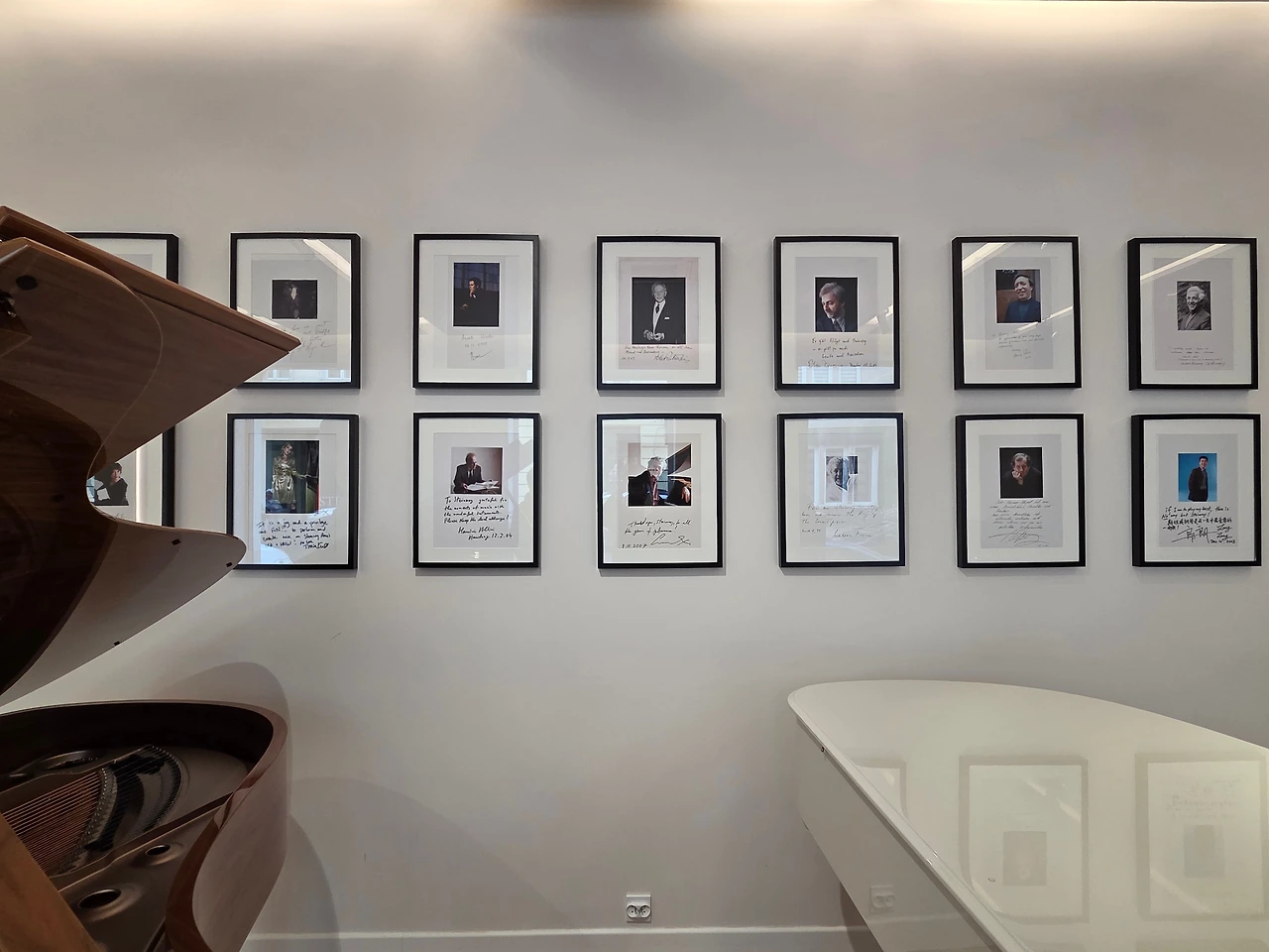 또 한 가지, 관람객들을 흥분하게 하는 것이 있었다. 스타인웨이 피아노와 즐거운 여정을 함께 했던 스타들의 친필 사인이 전시장 벽면 하나를 가득 메우며 전시되어 있었다. 폴란드 피아니스트 크리스티안 짐메르만(Krystian Zimerman)을 비롯하여 마르타 아르헤리치(Martha Argerich), 머레이 페라이어(Murray Perahia), 예브게니 키신(Evgeny Kissin), 아르카디 볼로도스(Arcadi Volodos), 랑랑(Lang Lang), 등 유수의 클래식 피아니스트들의 사인과 다이애나 크롤(Diana Krall)과 같은 팝스타 뮤지션의 사인도 있었다. 쇼팽을 만나러 가는 길에 들른 피아노 전시장에서 살아있는 전설들이 스친 흔적을 발견하게 될 줄은 상상의 영역에도 없었던 일이라 너무 놀랍고 신기하기만 했다.