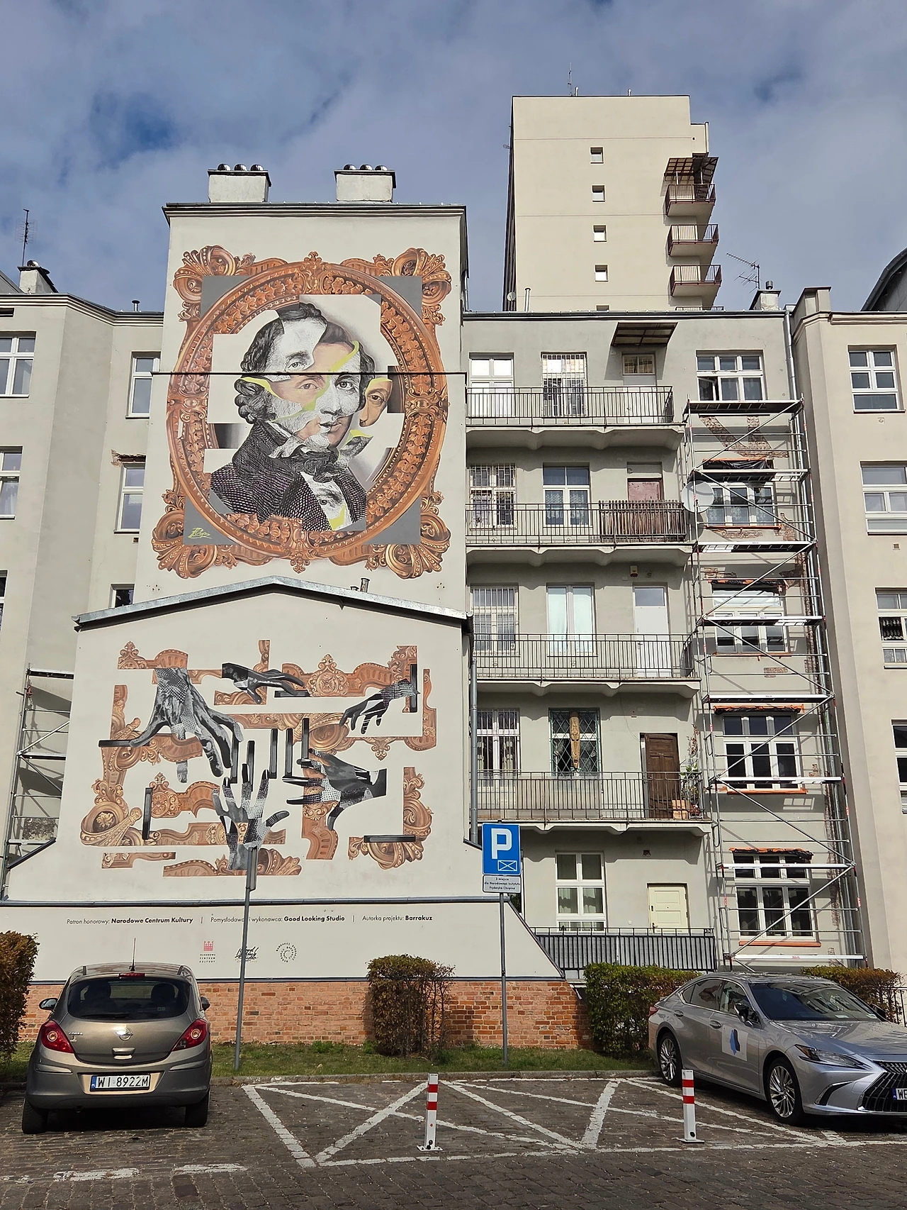 피아노살롱에서의 감격스러운 순간들을 고이 접어 마음 안에 잘 담아둔 채 다시 쇼팽박물관으로 향했다. 가는 길에 만난 벽화에도, 바르샤바 음악원(Uniwersytet Muzyczny Fryderyka Chopina) 벽에도, 쇼팽이 있었다. 풍경과 그 풍경을 담은 사진 그 자체가 특별한 굿즈가 되었다.