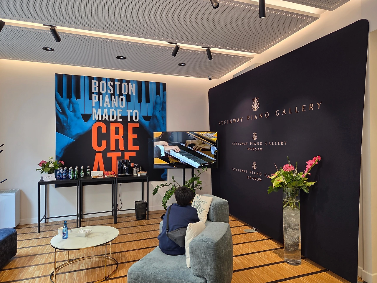 한국에서 피아노 전시장에 들어갔을 때에는 시연이 가능한지에 대해 선뜻 물어보기 쉽지 않은 분위기가 있었는데, 바르샤바 피아노살롱에서는 쇼팽 콩쿠르 기간이 아니라면 한 번 물어볼 수 있을 것 같은 적당한 환대가 느껴졌다. 레슨을 하고 있는 연습실이 관람객들에게 노출되는 구조이기도 하고, 다른 연습실도 만실이어서 시연을 할 수는 없었지만, 언젠가 다시 방문하게 된다면 좋아하는 쇼팽 작품 한 곡 정도는 연주해보고 싶다. 이렇게 다음 방문을 기약한다.