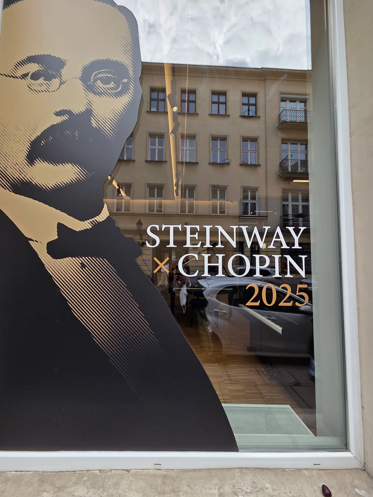 '바르샤바에서 스타인웨이 전시장을 볼 수 있다니..!', '바르샤바는 피아노를 애정하는 이에게 이처럼 우연을 가장하여 계획된 서프라이즈 선물을 툭- 무심하게 투척하는, 이토록 사랑스러운 도시인 건가?'라고 혼자 착각하며, 피아노살롱에 들어가기 위한 마음의 준비를 했다. 창밖에서, 길 너머에서 사진을 찍고 피아노살롱에 들어서니, 직원은 피아노 레슨 중이니 방해가 되지 않는 선에서 관람해야 한다는 주의사항을 안내했다. 그 후에는 별다른 제지가 없었다. 쇼팽 콩쿠르 개최를 기념하며 피아노에 관심이 많은 콩쿠르 관람객들이 전시장을 편하게 둘러보도록 배려하는 차원인 걸까 생각했다.