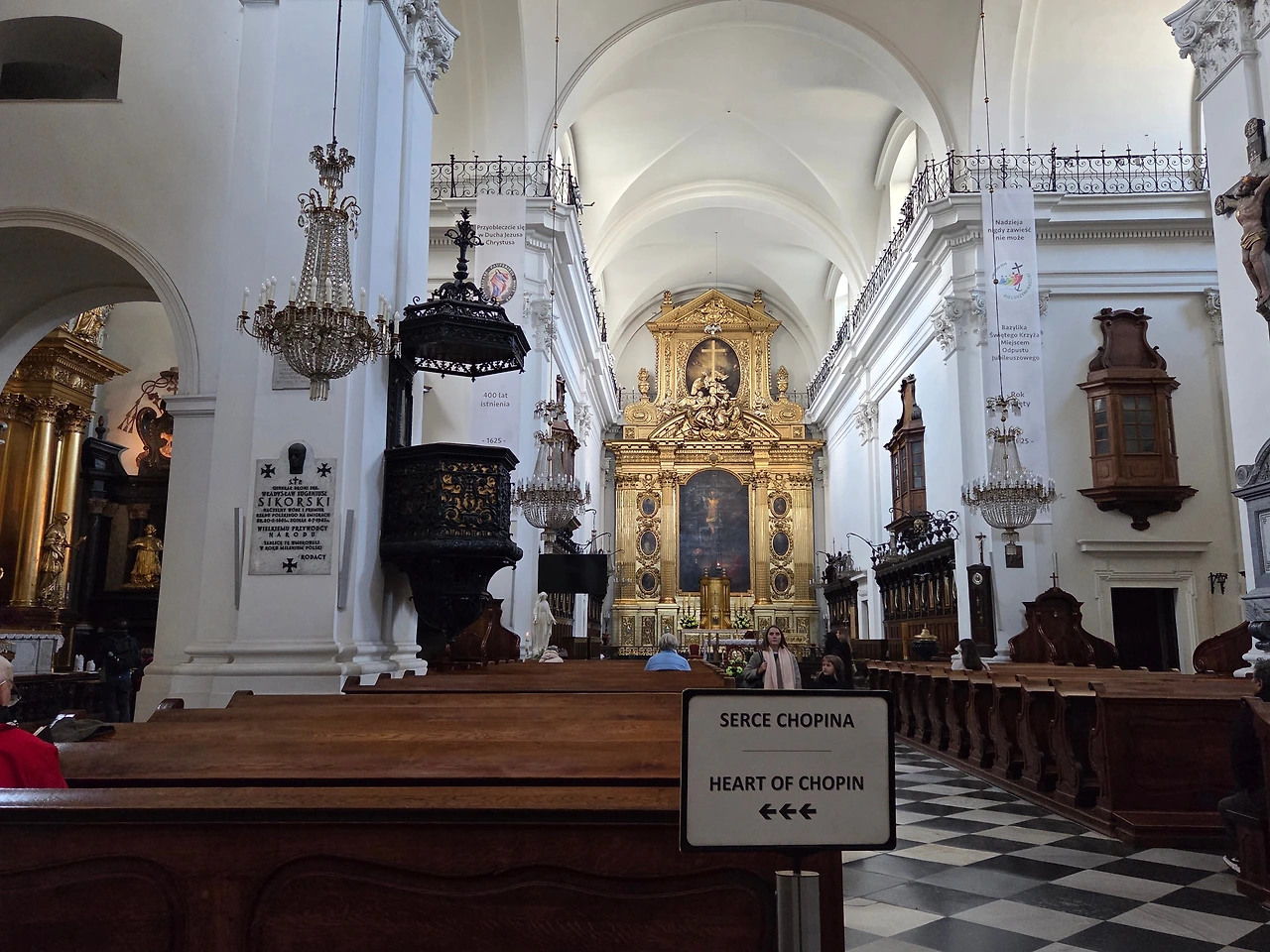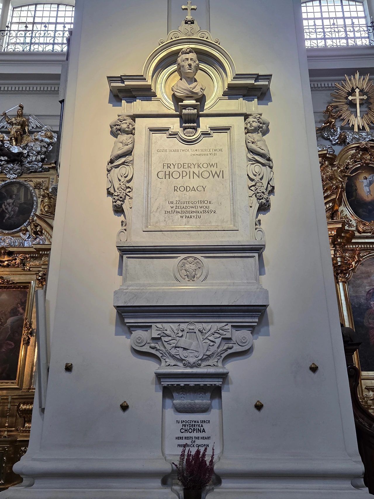 우리가 폴란드 바르샤바에 온 목적은 쇼팽 콩쿠르 본선 무대 직관이었고, 성 십자가 성당은 쇼팽이라는 망자 덕질의 성지와도 같은 곳이라고 생각했기 때문에 일정 중에 꼭 들러보고 싶었다. 지나친 문학적 상상일지도 모르지만 짧고 강렬한 인생을 마감하며 남긴 쇼팽의 뜻으로 쇼팽의 심장이 묻혀있는 성 십자가 성당에 가면, 그의 음악을 즐겨 듣고 음악의 아름다움을 좇는 이들의 가슴에 쇼팽의 영혼이 와닿을 것 같았다².