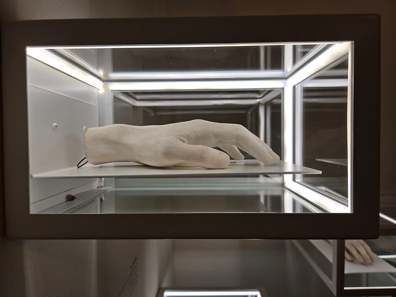 인상적이었던 전시품 중 첫 번째는 단연 쇼팽의 손 석고 주형이었다. 우리나라에서는 역사에서도, 현대에도 잘 접해보지 못했던 문화인데, 1800년대 중반에 신체의 일부를 석고로 떠내는 작업을 했고¹, 그 결과물인 쇼팽의 손 주형이 지금까지 보존되어 왔다는 사실 모두가 놀라웠다. 그 덕분에 현대의 바르샤바에서 살아있는 쇼팽의 손을 보는 것과 같이 생생한 느낌으로 관람을 할 수 있는 것이긴 하지만, 그러한 작업을 하고자 했던 발상과 결과물이 놀라웠다. 원래 전시되어 있던 Musée de la Vie Romantique(Paris Musées)에서는 몇 장의 러브레터, 펜과 쇼팽과 상드의 손 주형이 애틋하게 서로를 바라보는 형태로 전시되어 있었다고 한다. 연인이었던 그들을 상징적으로 보여주는 전시 기획이었을 것이다.