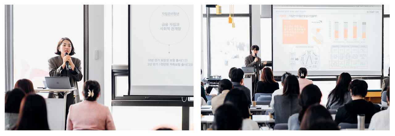 두 번째 순서는 전국 네트워크를 통해 영케어러 자조모임을 연결한 월드비전의 황병욱 대리님이었는데요. 월드비전이 한화생명과 협업하여 이 사업을 기획 및 진행하기까지의 과정과 고민하셨던 지점, 앞으로의 방향을 나눠 주셨습니다. “결국은 우리가 지원하지 않고 지원이 끝나고 그들이 스스로 설 수 있을 때 원하는 목표를 달성했다고 생각을 하거든요. 많은 영케어러들이 자립할 수 있게끔, 저희가 돌봄의 시간을 줄여주고 자립을 돕는 콘텐츠들을 지원하며 지속적으로 노력하겠습니다.”