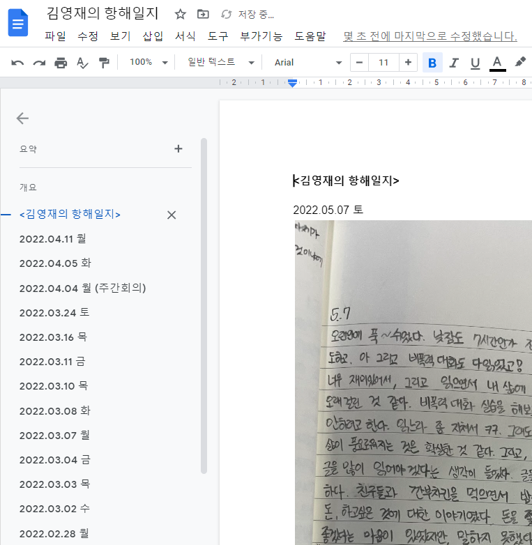 이렇게 찾은 귀한 배움이, 말로만 끝나면 또 잊어버리게 되잖아요? 그래서 진저티플에게는 각자의 울림을 기록하는 '항해일지'가 있어요. 나에게 남았던 순간들, 기록하고 싶은 순간들을 영원히 간직하는 거죠. 기록을 공유하면서 사람마다 다른 울림들을 관찰하기도 해요. 같은 업무를 해도, 사람마다 느낀점이 다르니까요!