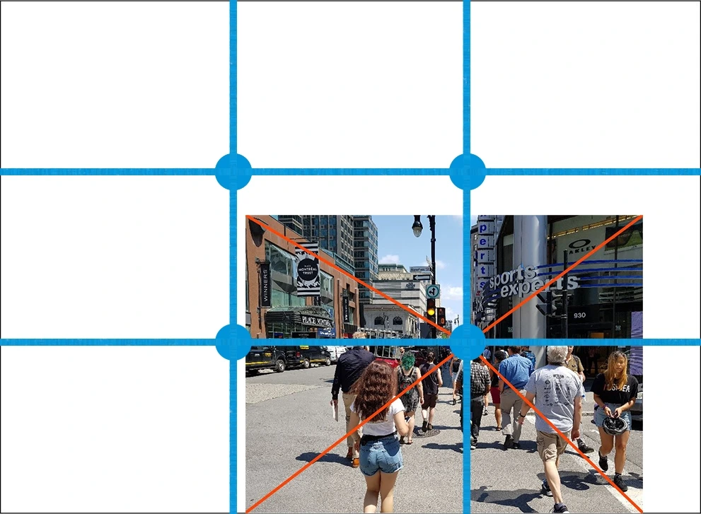 일부러 가이드라인들을 지우지 않고 남겨봤는데요. 이 사진 어디에도 눈높이 라인을 비롯한 주요 가이드들을 확인할 수 없죠? 실제로 중요한 가이드들이 모두 이미지밖에 위치하고 있거든요.
