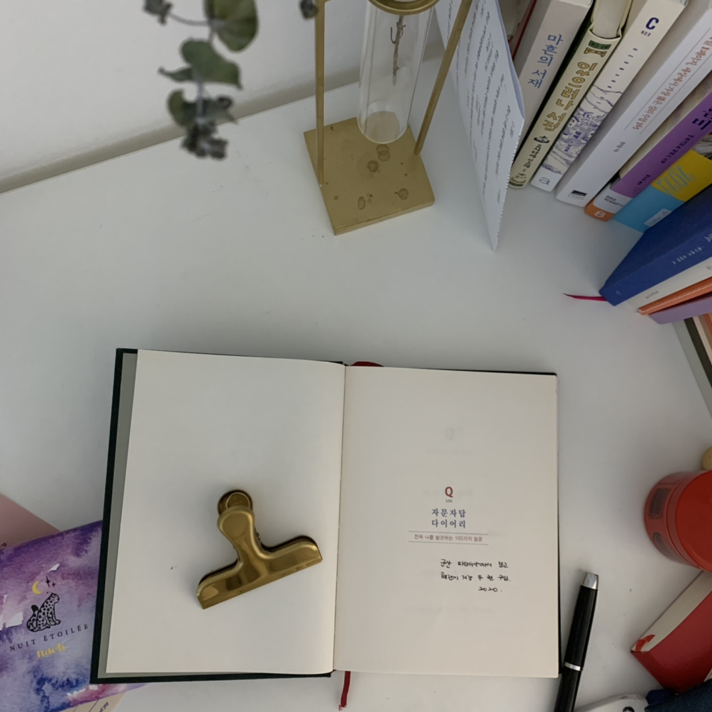 작년 여름에는 군산 책방 '마리서사'에서 <자문자답>이란 다이어리를 발견하고 두 권을 사서 하나를 친구에게 보냈다. 100개의 질문이 있는 워크북형 다이어리이다. 둘 다 심리에 관심이 많아서, 일주일에 하나씩 써보자고 제안했다. 가끔씩 오늘 몇 번을 썼는데 어땠다는 카톡이나 전화를 주고받으면서, 우리 다음에 만나면 이거 같이 이야기해보자고 제안했다.