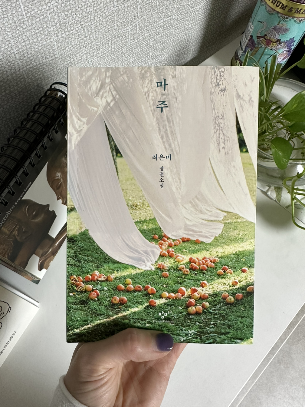 ‘책읽아웃 - 황정은의 야심한 책’에 소설가 최은미 작가님이 출연하신 방송을 듣고 소설이 궁금해졌다. (황정은 작가님 편에 소설가가 출연할 때면 꼭 그렇다. 깊이가 느껴지는 대화라서 무조건 소설이 찾아 읽고 싶어 진다.) 지난 주말 서점 ‘한쪽가게’에서 <마주>를 보고 냉큼 집어 들었다. 서점지기 님의 “이 책 정말 좋아요. ” 했을 때 느껴지던 감정의 결 덕에 책을 얼른 열어보았다. 읽는 내내 노르망디의 사과주 시드르가 그리웠다. 한 편의 곱고 단단한 이야기를 읽고, 내 이야기를 꺼내 보았다.