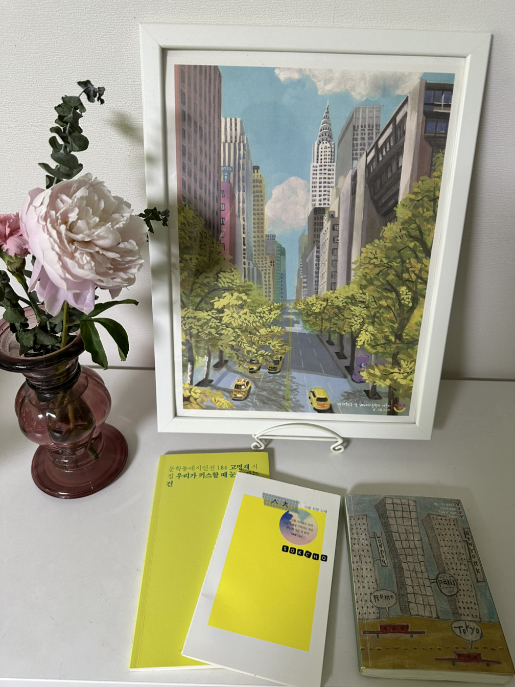 5월 초 4일간의 연휴 동안 네 군데의 서점엘 갔다. ‘오케이 슬로울리’에서 감각적인 도서와 문구를 구경하고, 오랜만에 공간을 누리고 싶어서 ‘한쪽가게’를 찾았다. 큰아들 책을 사러 교보문고에 갔고, 다음 날엔 독립영화를 한 편 보고 그 근처 서점인 ‘다다르다’를 들르지 않을 수 없어서 방문했다. 마지막 다다르다의 경우 영수증 일기로 유명한 곳이어서 정말 오랜만에 기다란 영수증을 받았다. 버릴 수 없는 귀한 편지인 셈이다. 그러고 보니 대전의 서점에는 이런 영수증을 주는 서점이 꽤 있다. 오케이 슬로울리에서는 추천 문장이 쓰인 영수증을 준다. 늘 가던 곳인 버찌책방에서 오랜만에 영수증을 받고 보니, 하단에 이번 주 추천 도서가 쓰였다. 티켓이 생기거나 카드, 엽서 등을 받을 때 붙여두는 수첩에 붙여두었다. 어느새 두툼해진 수첩을 보니 여행 수첩이 생각난다.